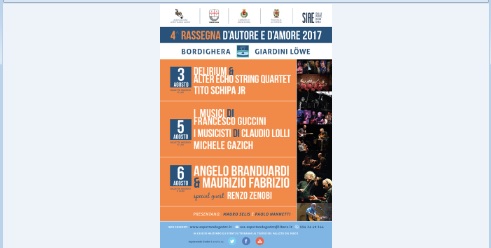 Bordighera – Quarta Rassegna “d’Autore e d’Amore” 3-5-6 agosto 2017