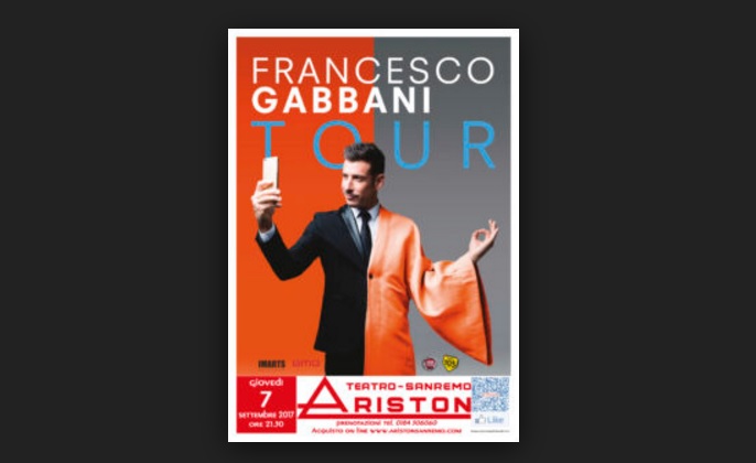 FRANCESCO GABBANI SUL PRESTIGIOSO PALCO DEL Â TEATRO ARISTON DI SANREMO IL Â 7 SETTEMBRE 2017