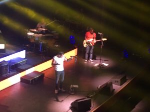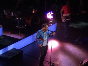 Dopo canzoni allegre e spensierate a metà concerto la band lascia il palco al cantante che suona da solo al pianoforte “Immenso” e “Maledetto amore”. Sono storie d’amore, è il momento romantico della serata, cui segue quello più ironico con “I dischi non si suonano”, frecciata a tutti i dj che schiacciando un bottone pensano di suonare i dischi.
