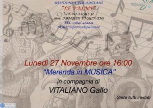 Lunedì 27 Novembre 2017 alle 16:oo alla Residenza per anziani “Le Palme”