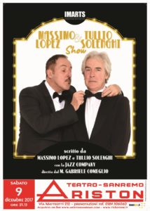 Sabato 9 dicembre alle ore 21.15 al Teatro Ariston anteprima nazionale dello spettacolo “Massimo Lopez & Tullio Solenghi Show” scritto da Massimo Lopez e Tullio Solenghi, con la JAZZ COMPANY diretta dal M. Gabriele Comeglio.