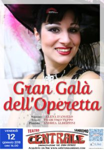 SANREMO “GRAN GALA’ DELL’ OPERETTA” VENERDI’ 12 GENNAIO AL TEATRO CENTRALE