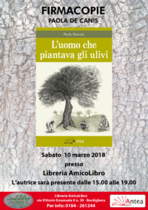 BORDIGHERA – PAOLA DE CANIS SABATO 10 MARZO LIBRERIA AMICO LIBRO