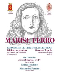 MARISE FERRO: esposizione libri e conferenza presso la Biblioteca Aprosiana di Via Garibaldi – Ventimiglia Centro storico