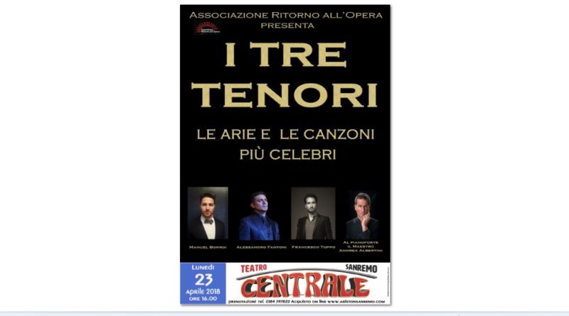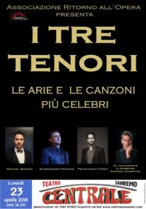 SANREMO “I TRE TENORI” LUNEDI’ 23 APRILE AL TEATRO CENTRALE