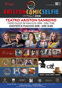 Mercoledì 30 (ore 17) e giovedì 31 maggio (ore 21.00) al Teatro Ariston di Sanremo andrà in scena la grande finale di Ariston Comic Selfie 2018, lo spettacolo del web. In diretta streaming dall’Ariston, sul sito www.aristoncomicselfie.com e sulle pagine Facebook e sui profili social di tutti i protagonisti coinvolti, un doppio appuntamento completamente 2.0