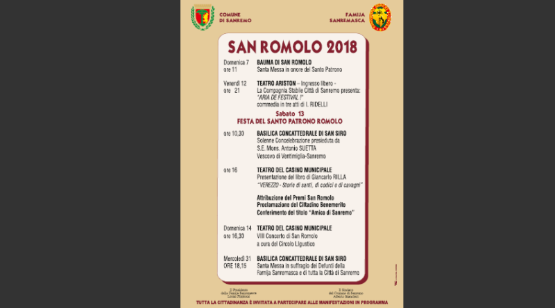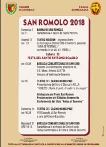 SANREMO – APPUNTAMENTI PER LA FESTIVITA’ DI SAN ROMOLO