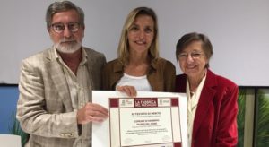 Momento della consegna da parte della Prof.ssa Maria Paola Azzario Chiesa (Presidente della Federazione italiana dei Club e Centri per l’UNESCO) e da parte del Dott. Ciro Esse (Presidente del Club per l’UNESCO di Sanremo) all’Assessore Barbara Biale del Comune di Sanremo dell’Attestato di merito assegnato dalla Giuria del Premio la “Fabbrica nel Paesaggio al FLORISEUM del Comune di Sanremo”.