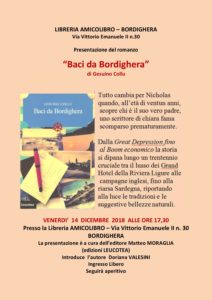 Locandina per presentazione romanzo Baci da Bordighera PDF