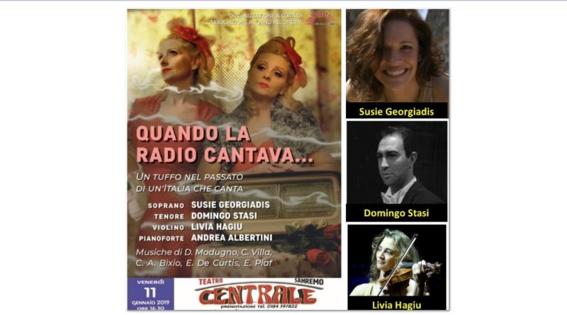 C Venerdì 11 gennaio alle ore 16.30 presso il Teatro Centrale di Sanremo, avrà luogo un concerto dal titolo QUANDO LA RADIO CANTAVA presentato dall’Associazione Ritorno all’Opera.