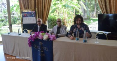 BORDIGHERA: il carro, che ha sullo sfondo l’immancabile rocca e la Chiesa di Sant’Ampeliosimbolo della città , presenta al centro la grande prua di una barca, un tipico gozzo ligure che esce dall’acqua imponente e giganteggia su tutta la struttura. Seduto sulla punta del gozzo, un pescatore alto tre metri, intento a lanciare la canna in mare. All’amo, però, ha abboccato un grandissimo pesce spada che spunta fuori dall’acqua e lotta con il pescatore. Tutta la scena è seguita con enorme stupore da due turisti, anch’essi in piedi sul gozzo alle spalle del pescatore i quali, macchina fotografica alla mano, sono pronti a immortalare il grande momento. La figura principale è il pescatore sulla punta del grande gozzo che domina la scena. Alle sue spalle, due turisti divertiti e il simbolo dell’argomento affidato a Bordighera: la pescaturismo. Ma la figura d’effetto è sicuramente il pesce spada, che spunta dall’acqua e lotta per la sopravvivenza ormai agganciato all’amo da pesca. Degne di nota anche la chiesa di Sant’Ampelio e le palme, pensate per arricchire la composizione e soprattutto per inserire nel carro elementi identificativi della città . Sul fianco del gozzo, anche un grosso stemma della città .