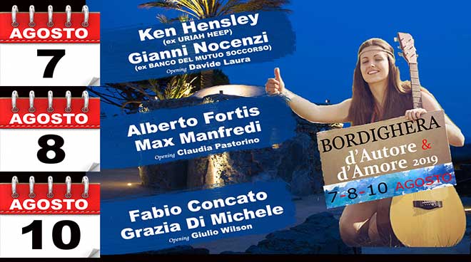 Estate 2019: la rassegna ‘d’Autore e d’Amore’ ritorna a Bordighera e porta con sé grandi nomi della Storica Canzone d’Autore e Progressive.
