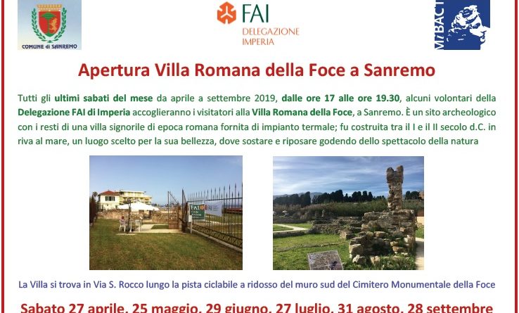 L’iniziativa è resa possibile dalla collaborazione tra Delegazione del FAI, Comune di Sanremo e Soprintendenza Archeologia, Belle Arti e Paesaggio.