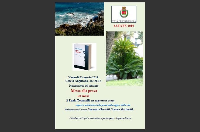 Domani 23 agosto 2019, Chiesa Anglicana, ore 21.15 avrà luogo la presentazione del romanzo “Messa alla prova” di Ennio Tomaselli.