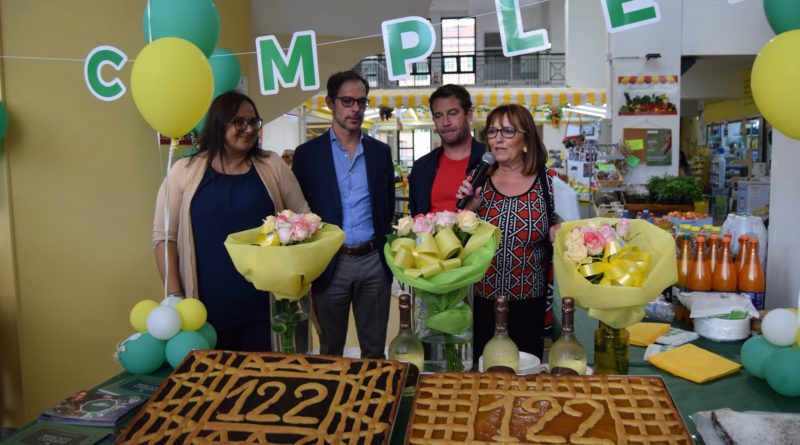 Taglio della torta al Mercato Coperto in Piazza Garibaldi a Bordighera per il 122° compleanno della struttura