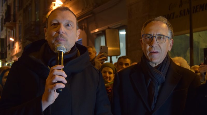 SANREMO – AMADEUS ACCENDE LE LUMINARIE IN OMAGGIO AL GRANDE DOMENICO MODUGNO