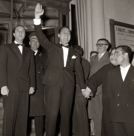 Alberto Sordi ritorna al Casinò di Sanremo. Infatti partecipò e vinse il 13 aprile del 1956 alla terza edizione del Rally del Cinema Roma Sanremo. Fu premiato con il Pegaso d’Oro nel Salone delle Feste del Casinò. L’evento riscosse una grande risonanza e partecipazione di pubblico, che salutò Alberto Sordi all’uscita della Casa da Gioco.
