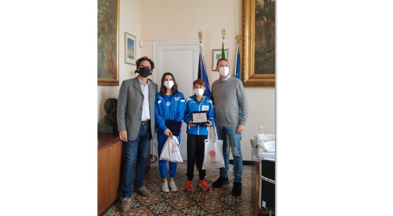 Ieri pomeriggio il Vicesindaco Mauro Bozzarelli e l’Assessore Stefano Gnutti hanno consegnato una targa a Elisa Moro e Gabriele Ferrara, giovani sportivi in forza all’Atletica 2000 Bordighera, in riconoscimento dei brillanti risultati raggiunti negli ultimi mesi.