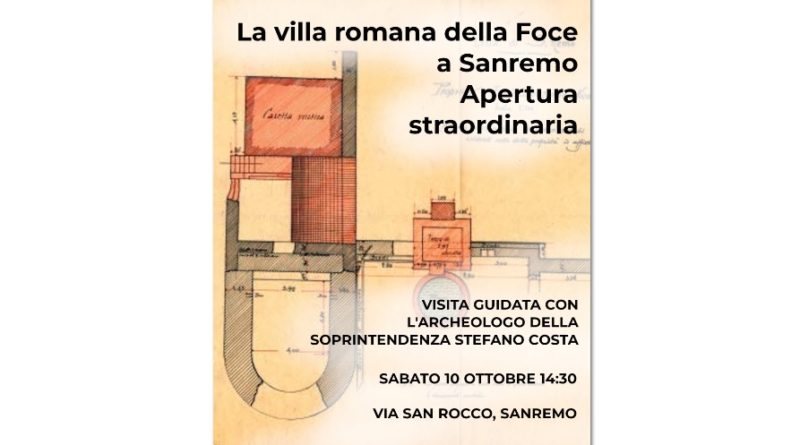Domani (sabato 10 ottobre) il Ministero per i beni e le attività culturali e per il turismo (MiBACT) organizza una visita guidata gratuita alla Villa romana della Foce di Sanremo, uno dei siti archeologici statali di maggiore interesse dell’intera provincia.