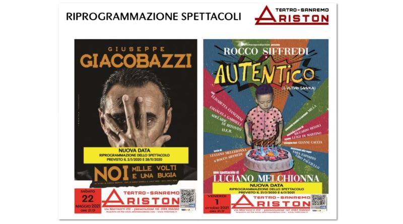 Si comunica la riprogrammazione degli spettacoli del Teatro Ariston come segue:
