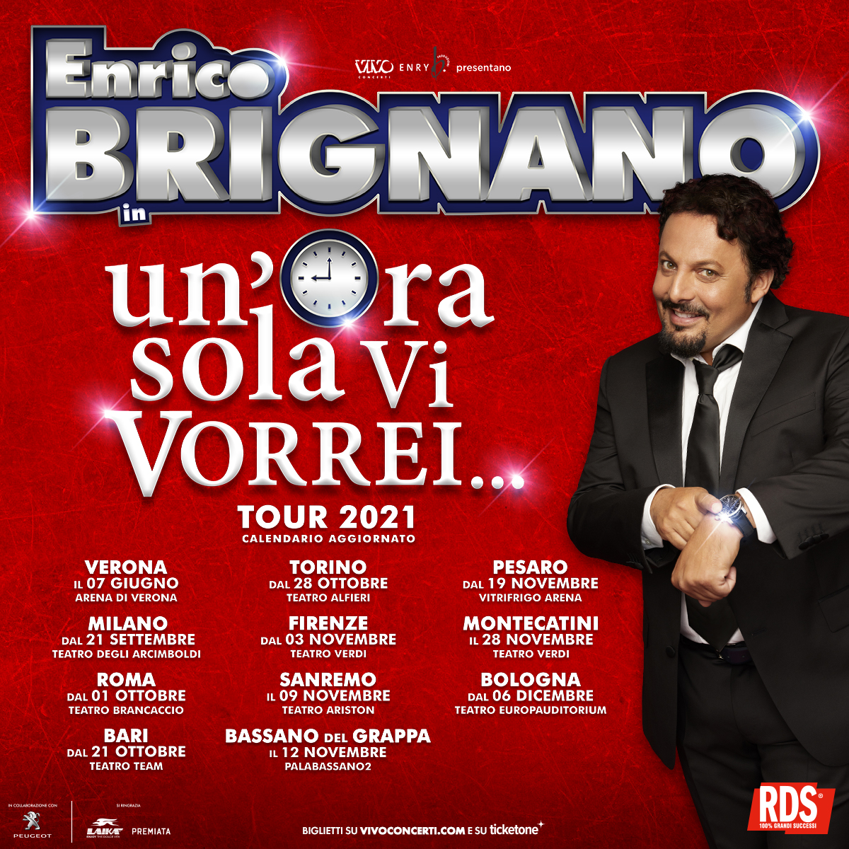 A causa del protrarsi dell’emergenza sanitaria e dello stato d’emergenza causati dal Covid-19, si posticipano le date indoor di “Un’ora sola vi vorrei”, il tour teatrale di Enrico Brignano.