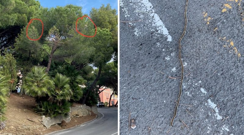 BORDIGHERA – L’EMERGENZA DELLA PROCESSIONARIA NEI PINI SOTTO LA SPIANATA DEL CAPO