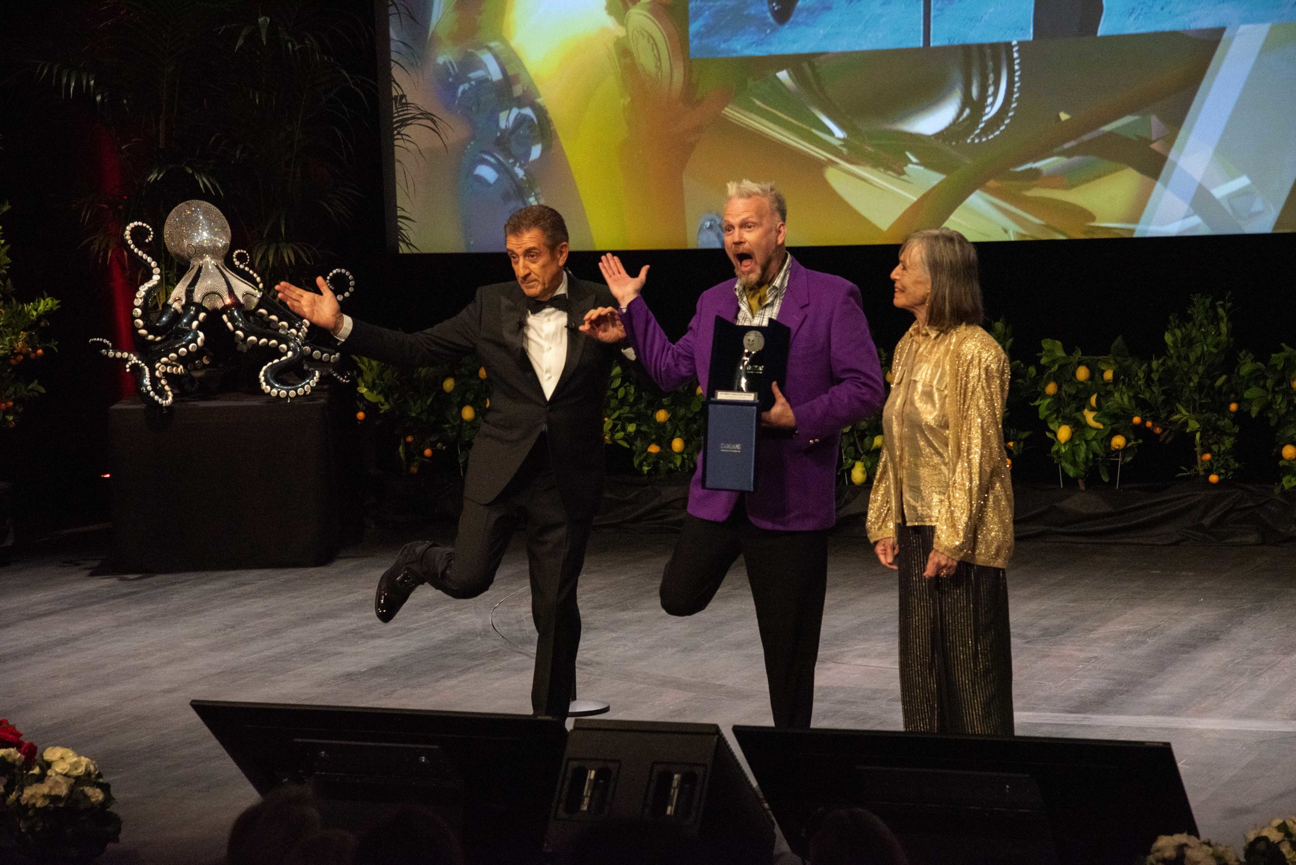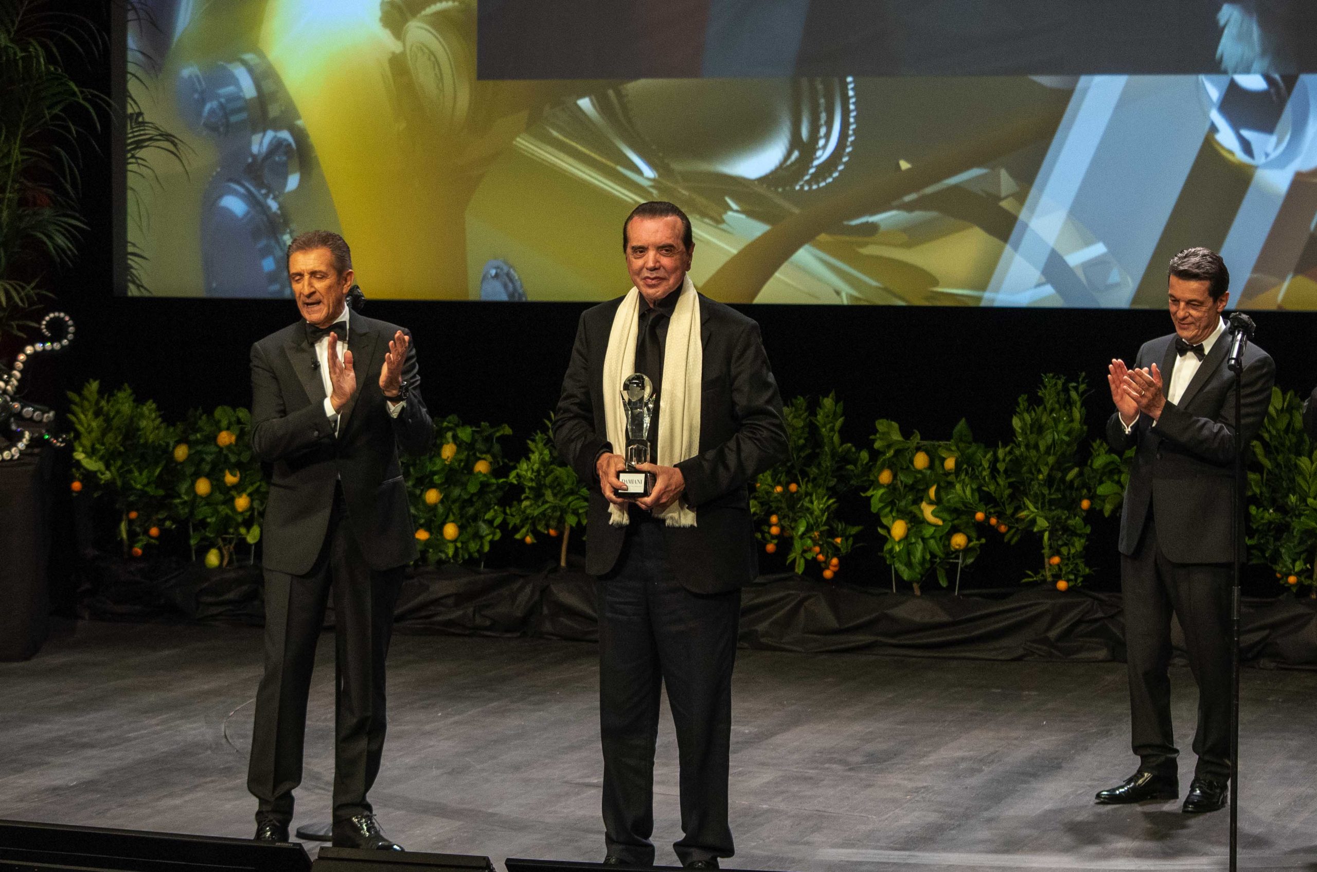 Sul palcoscenico del Grimaldi Forum di Monaco, Ezio Greggio ha presentato la cerimonia di premiazione, alla quale hanno partecipato ospiti internazionali e italiani del piccolo e grande schermo. L’attore di successo Chazz Palminteri (Bronx, I Soliti Sospetti, Terapia e Pallottole, Modern Family), nominato agli Oscar come attore non-protagonista per Pallottole su Broadway di Woody Allen e recentemente apparso in Godfather of Harlem, è arrivato direttamente da Hollywood per ricevere il prestigioso Movie Legend Award.
