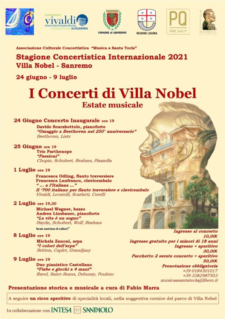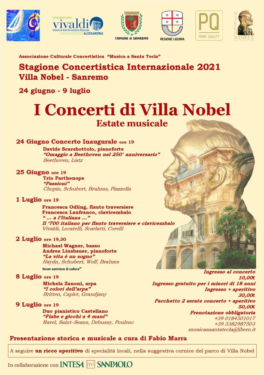 Prenotazione obbligatoria con posti limitati sino ad esaurimento:0184 – 501017 – Villa Nobeloppure via e mail:musicaasantatecla@libero.it