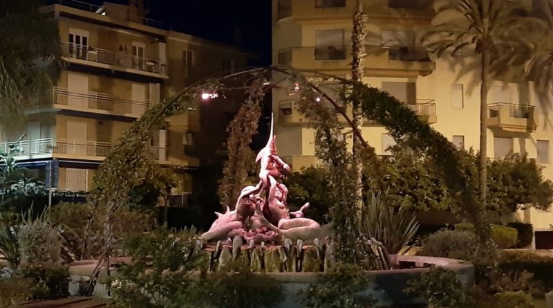 BORDIGHERA – LA FONTANA DELLE SIRENE ILLUMINATA DI ARANCIONE