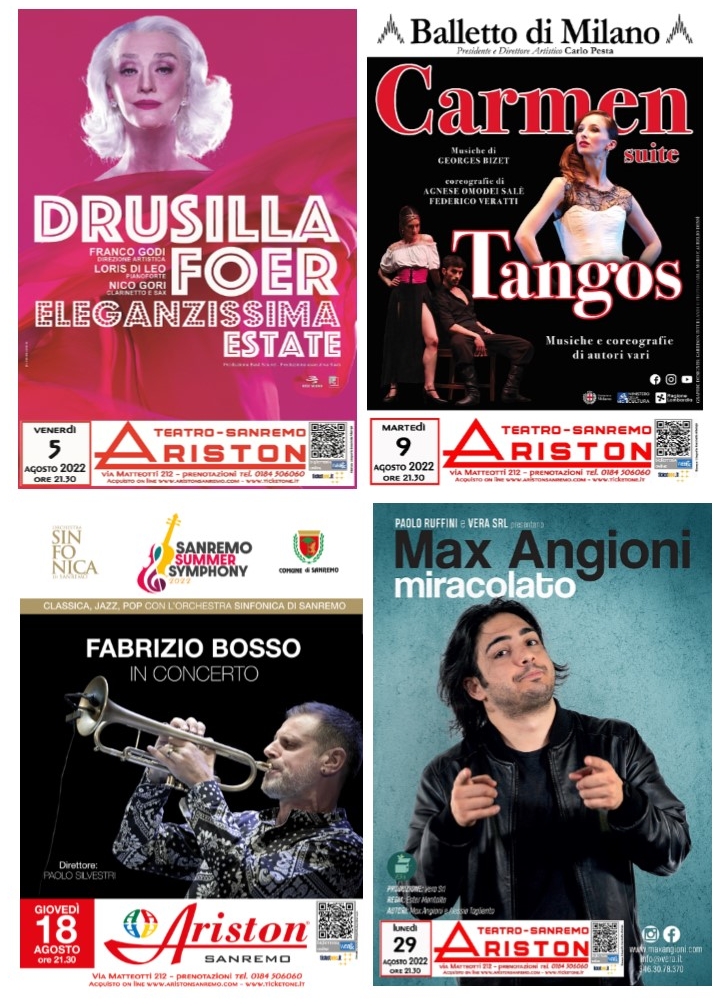 TEATRO ARISTON SANREMO – CALENDARIO SPETTACOLI DEL MESE DI AGOSTO 2022