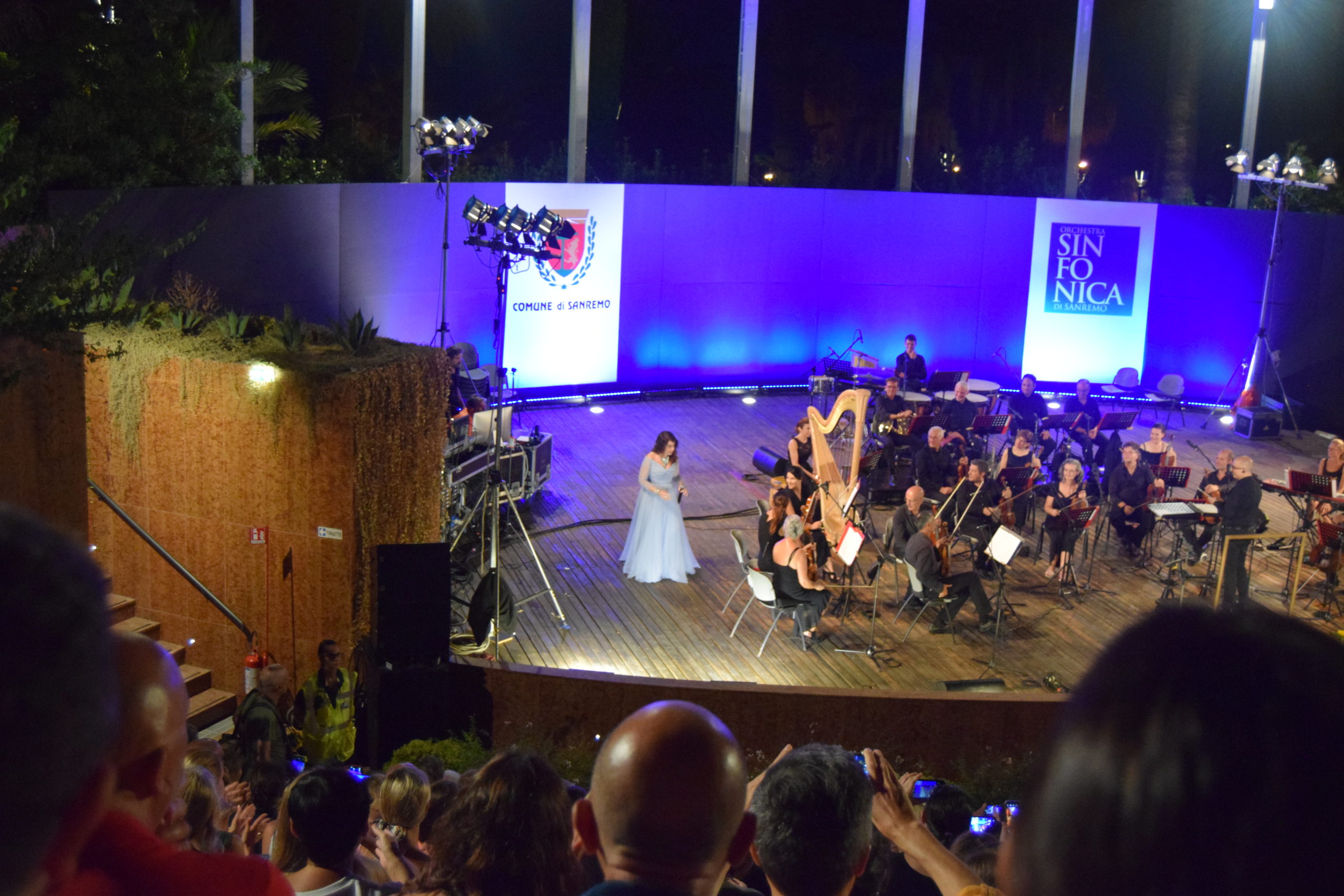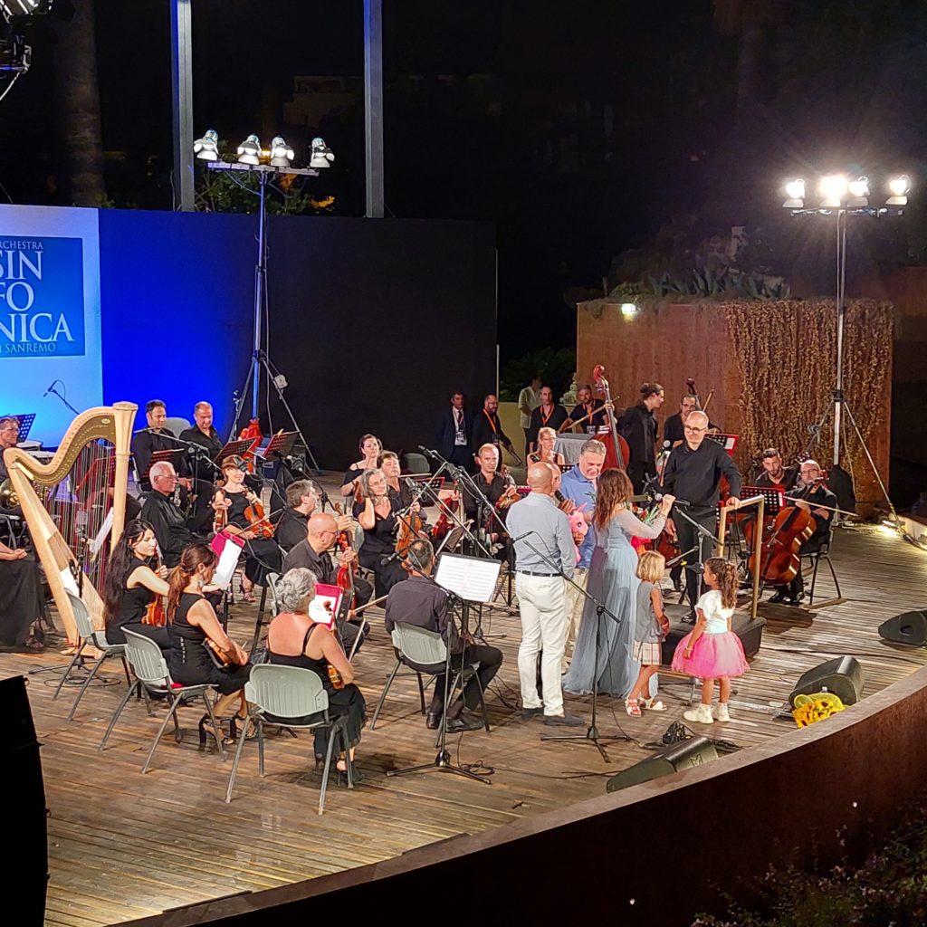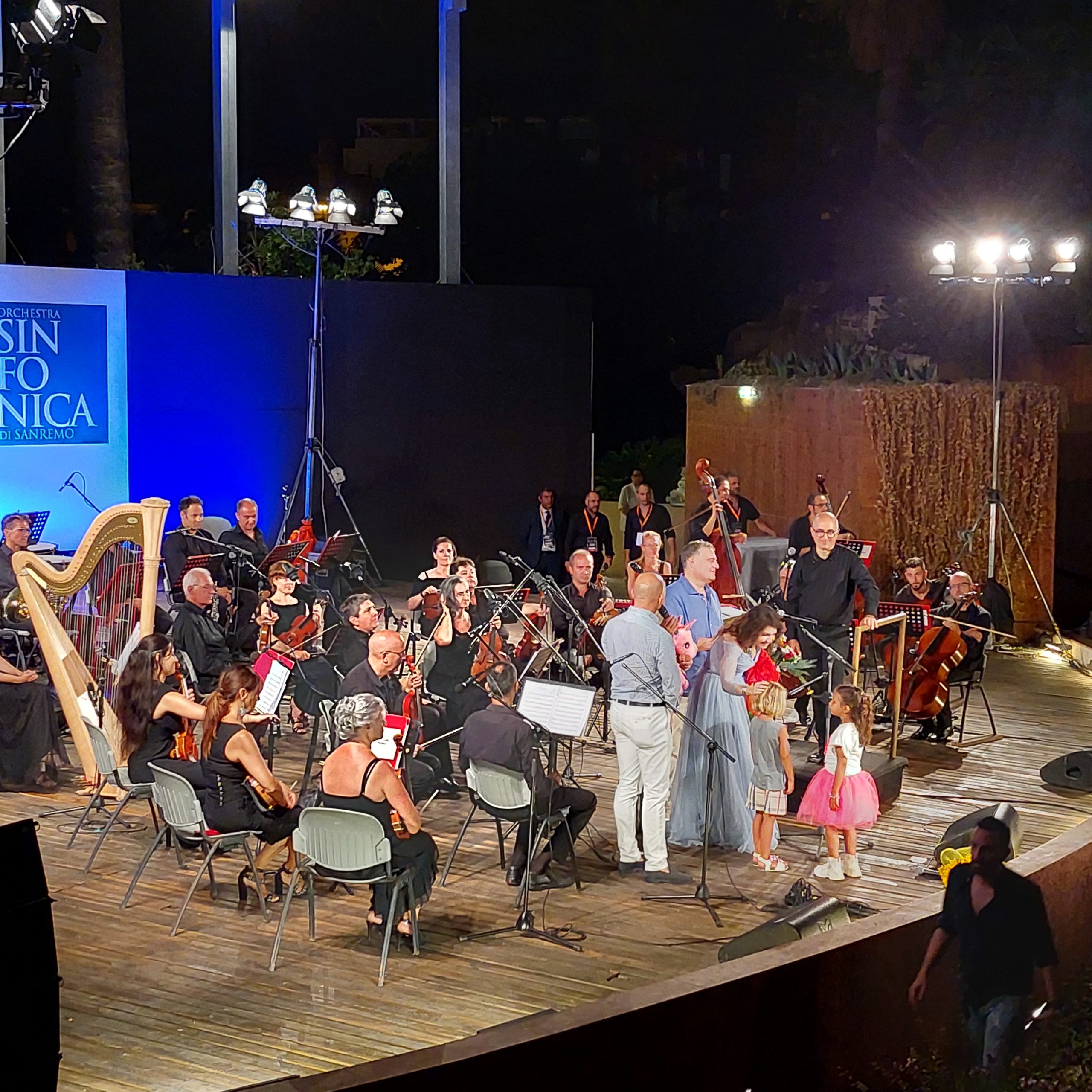 Sul palco dell’Auditorium Alfano nella parte finale del concerto sono intervenuti Giuseppe Faraldi assessore del Comune di Sanremo e Filippo Biolé Presidente della Fondazione Orchestra Sinfonica di Sanremo.