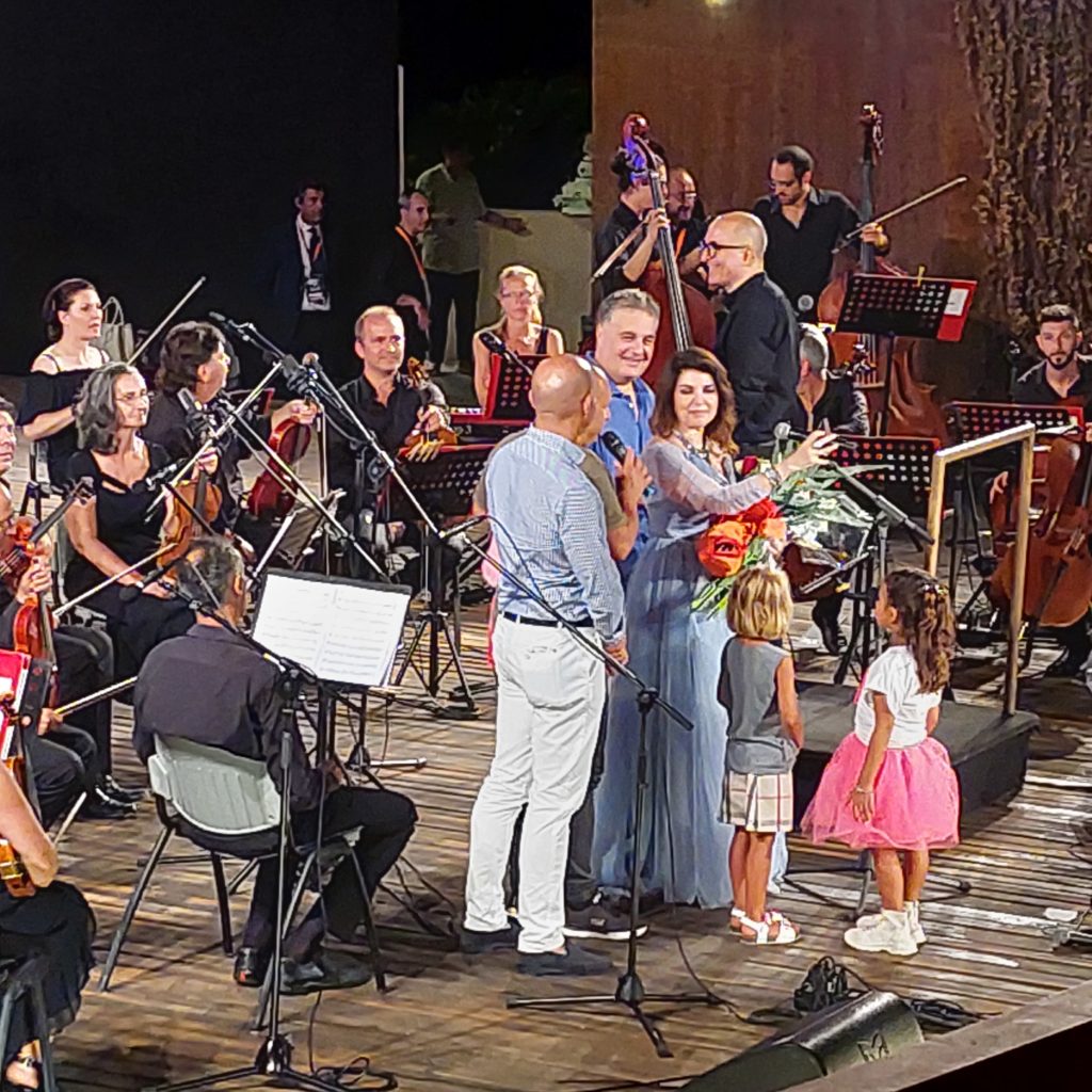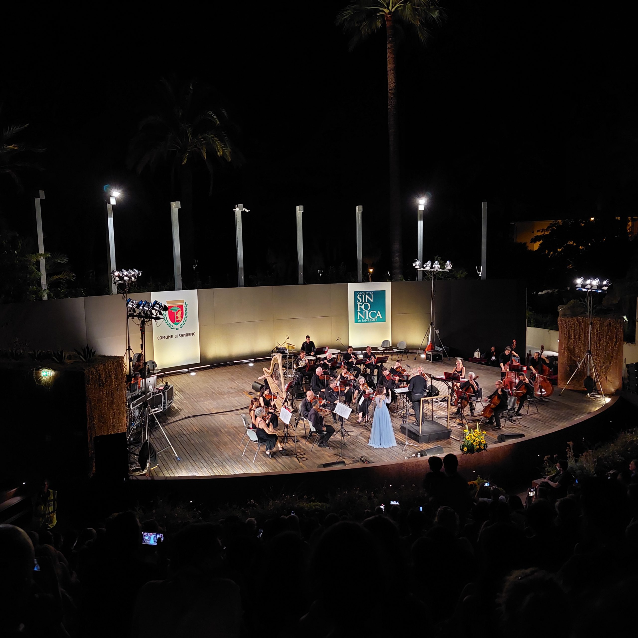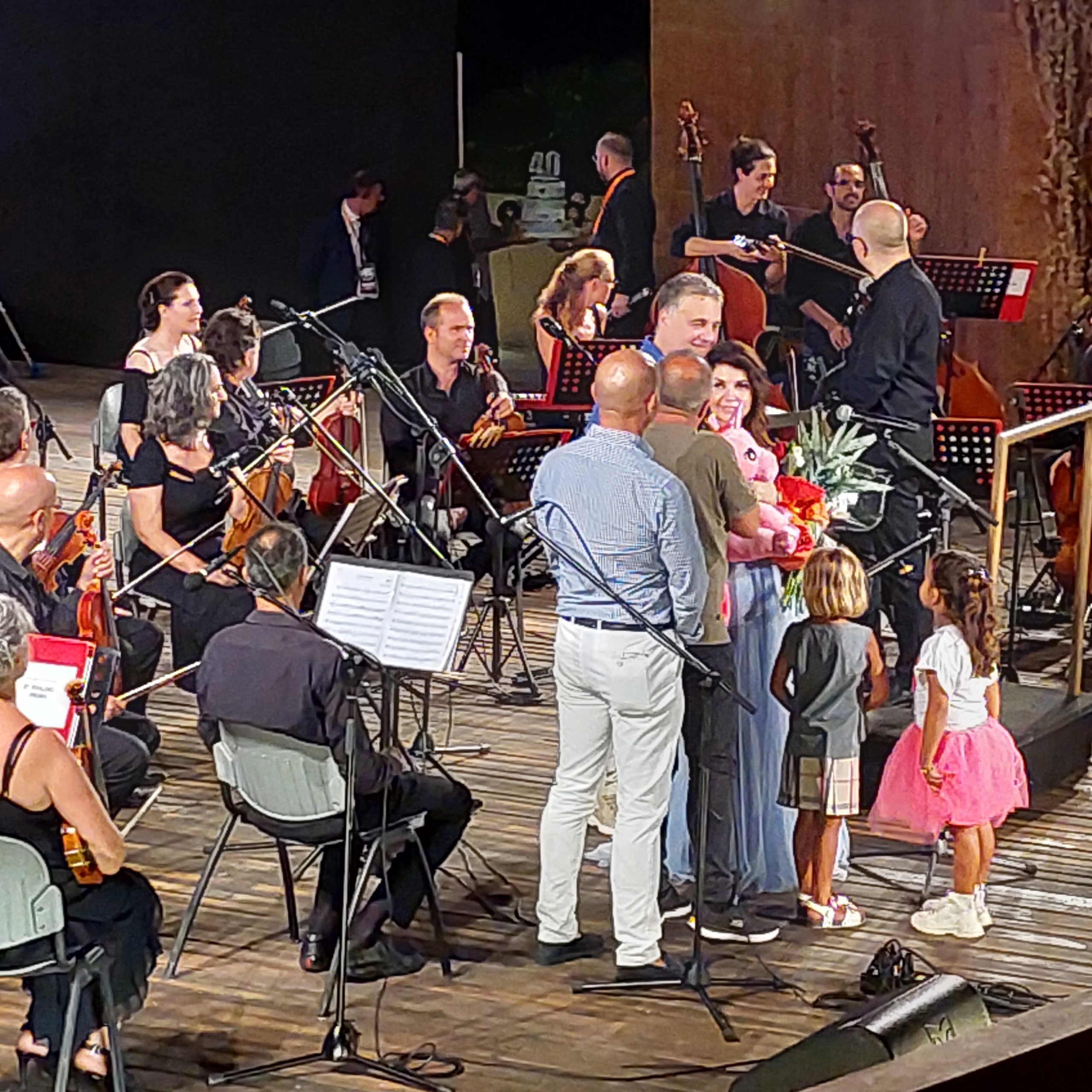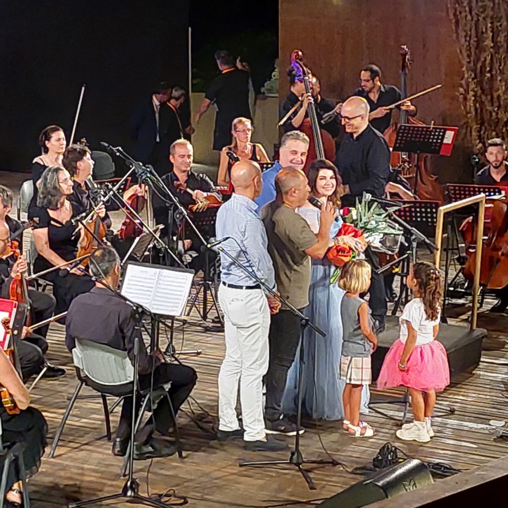 Sul palco dell’Auditorium Alfano nella parte finale del concerto sono intervenuti Giuseppe Faraldi assessore del Comune di Sanremo e Filippo Biolé Presidente della Fondazione Orchestra Sinfonica di Sanremo.