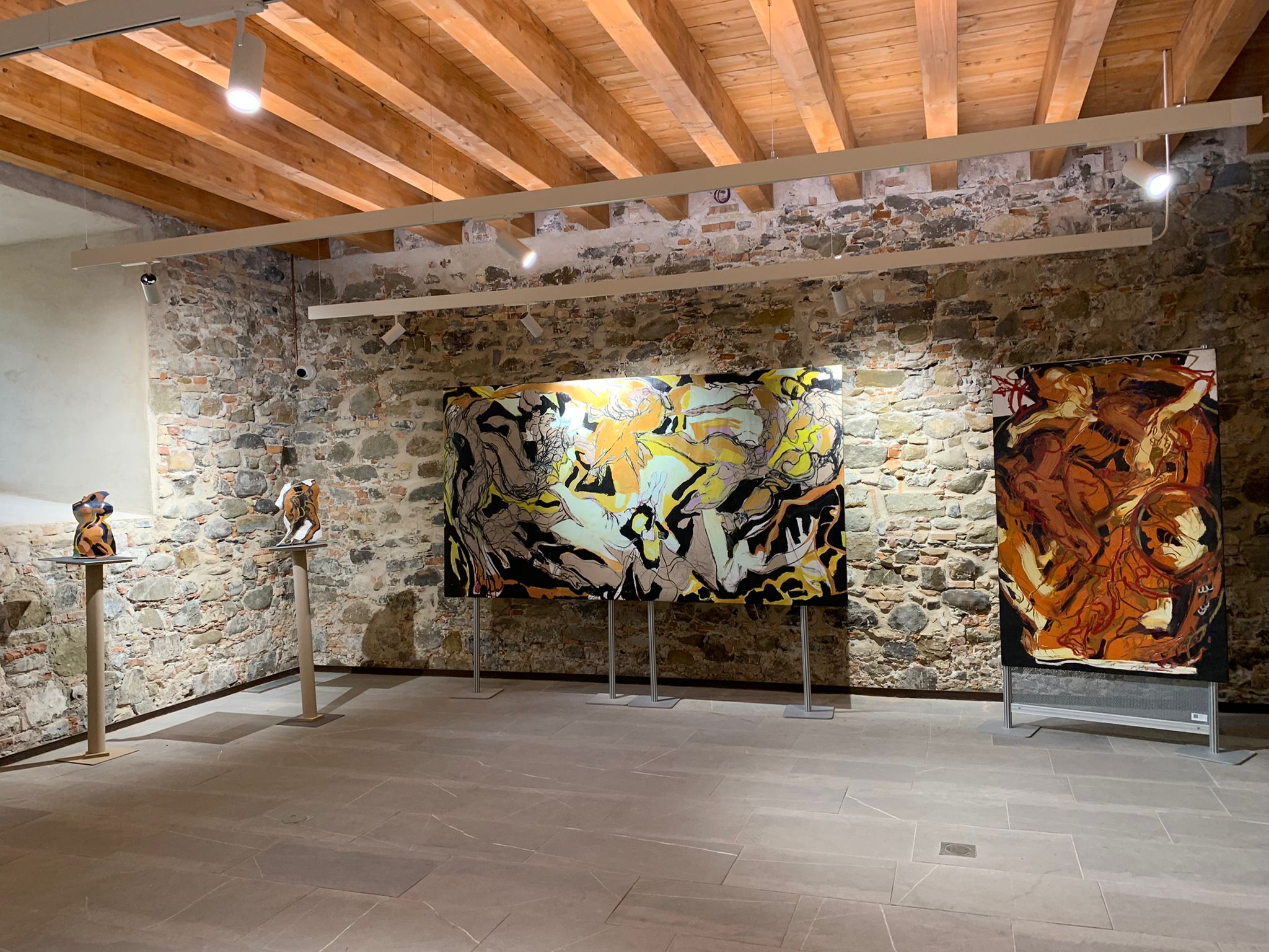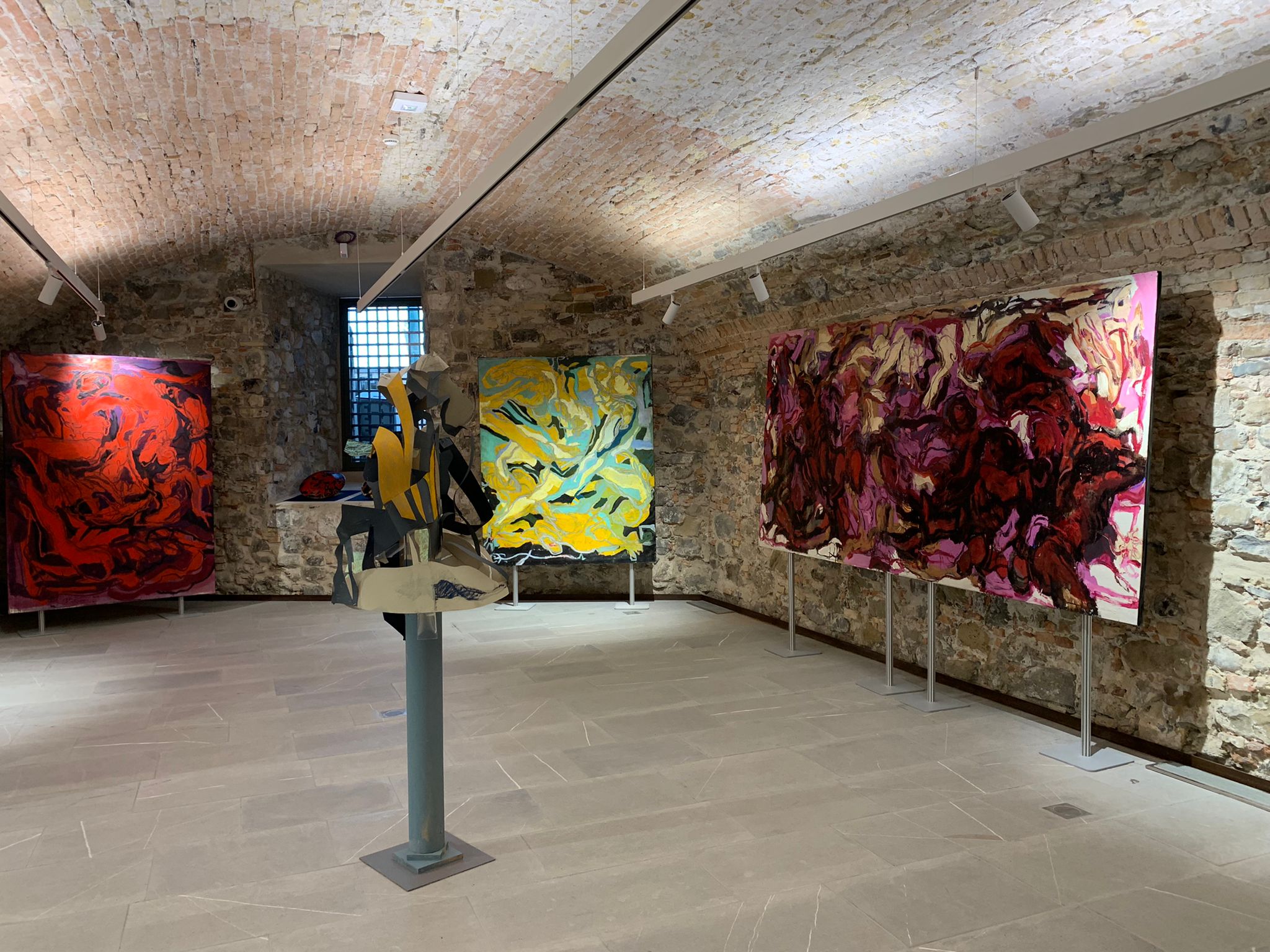 Tele, opere scultoree e soprattutto l’installazione Meta-Forma (realizzata appositamente per questo evento) offrono al visitatore la possibilità di interpretarle secondo la personale sensibilità: ogni tela e ogni scultura sono viaggio e avventura nel cuore della trasformazione in atto.