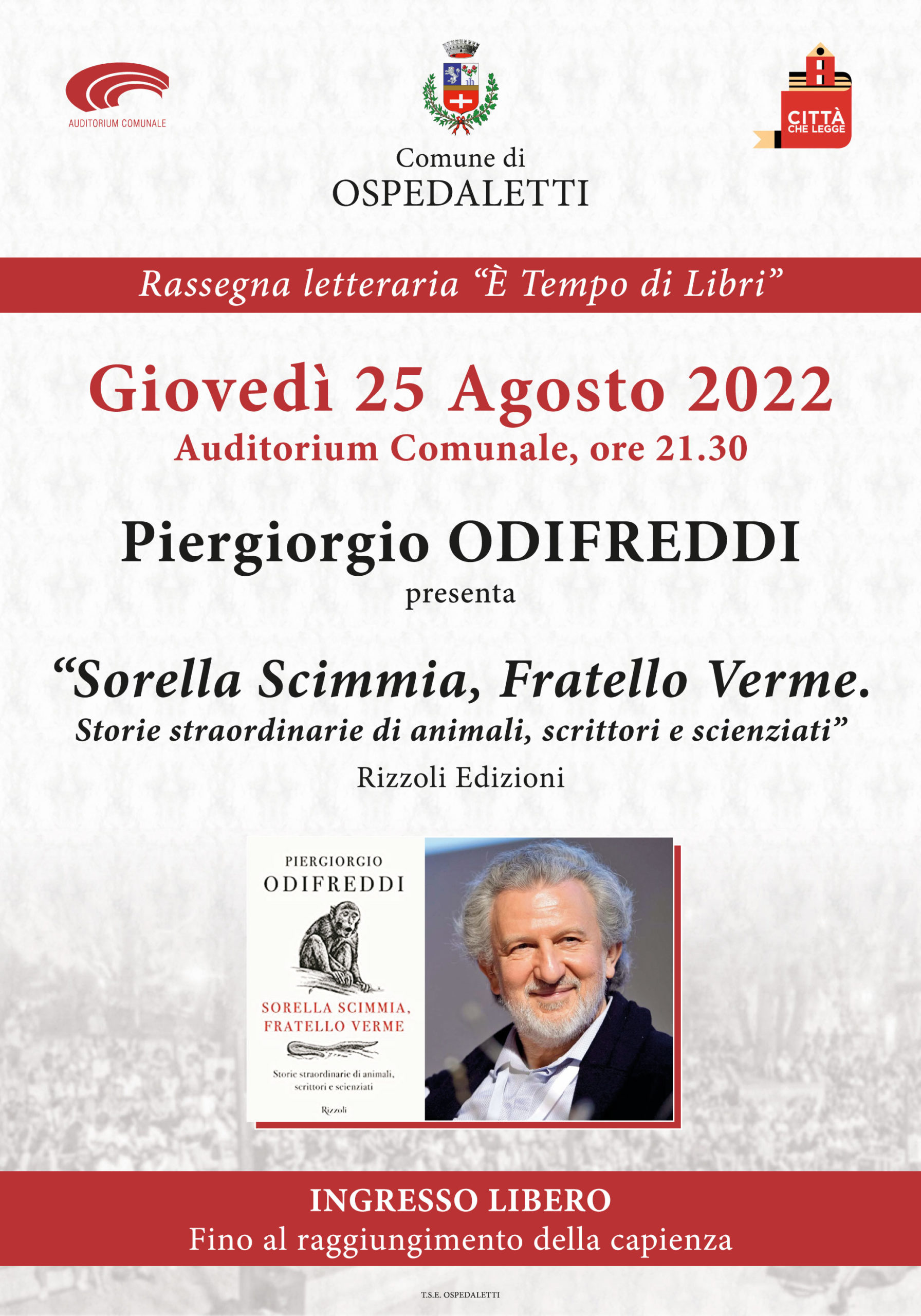 A Ospedaletti, Odifreddi presenterà il suo libro “Sorella scimmia, fratello verme – Storie straordinarie di animali, scrittori e scienziati” edito da Rizzoli.
