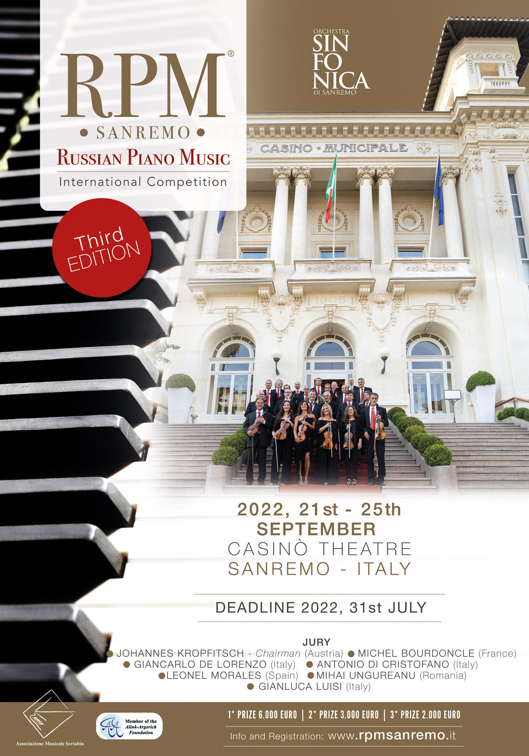 Dal 21 al 25 di settembre sul palco del Teatro dell’Opera del Casinò di Sanremo Giovani Pianisti provenienti da tutto il mondo si esibiranno in competizione nel “RPM RUSSIAN PIANO MUSIC”.