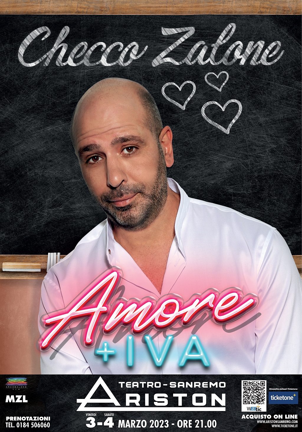 Venerdì 3 e sabato 4 marzo 2023 alle ore 21.00 Checco Zalone sarà di scena al Teatro Ariston con il nuovo spettacolo teatrale Amore + IVA