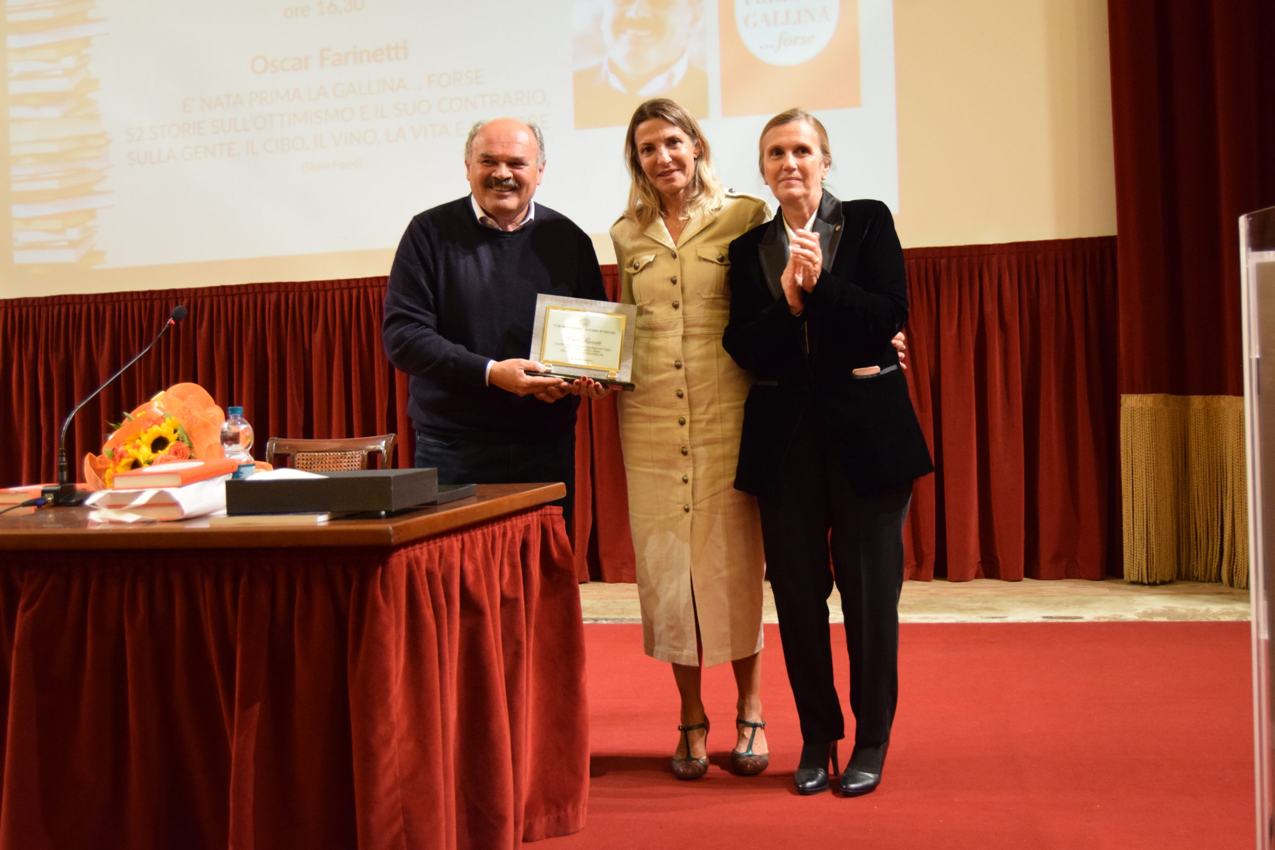 Oscar Farinetti ribadisce durante la sua presentazione ” Siamo fortunati a vivere in un bel paese come l’Italia, baluardo di molte eccellenze e di sostenibilità,” lui imprenditore con una formazione dal punto di vista della letteratura, scrive e riceve premi. Bisogna aver fiducia negli altri!