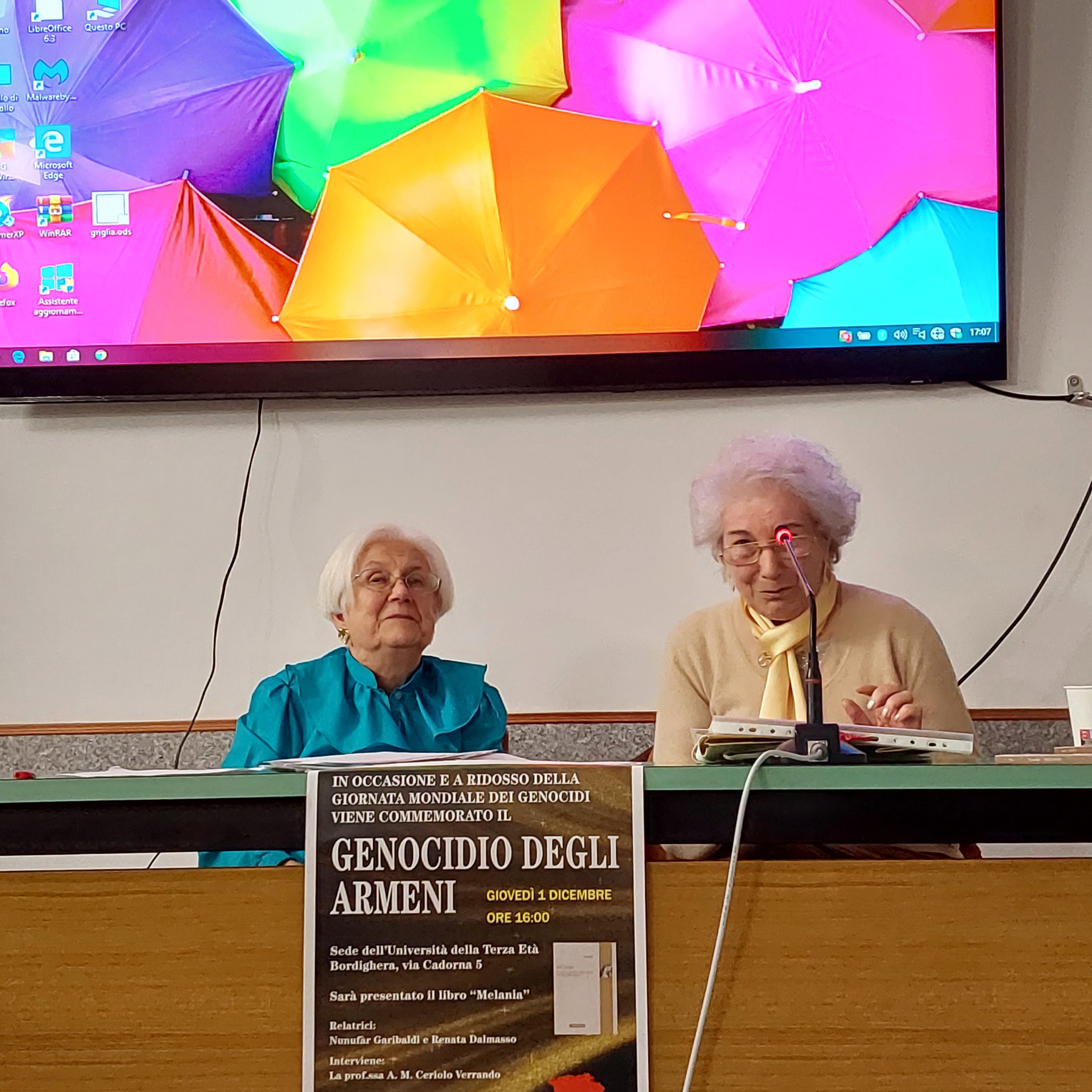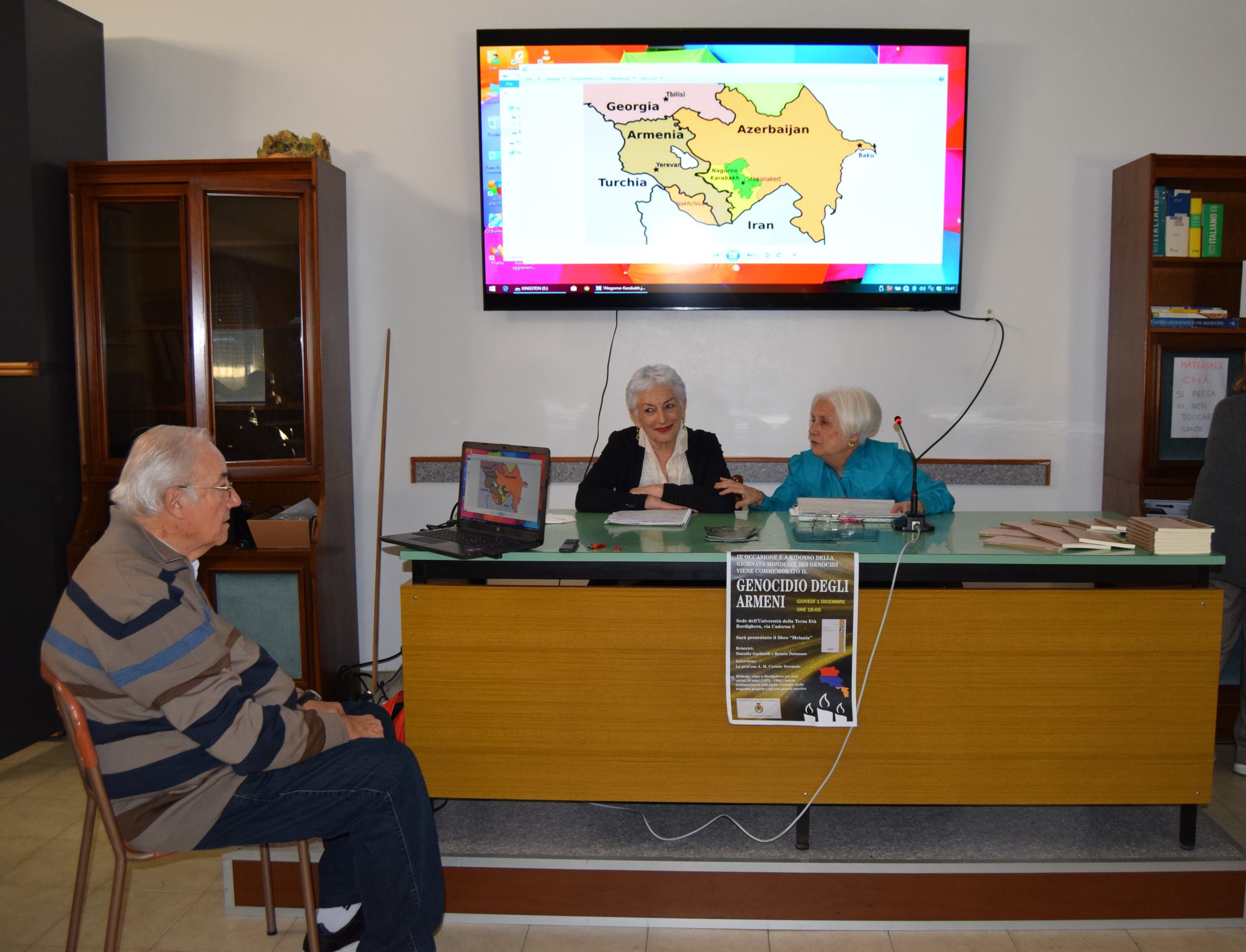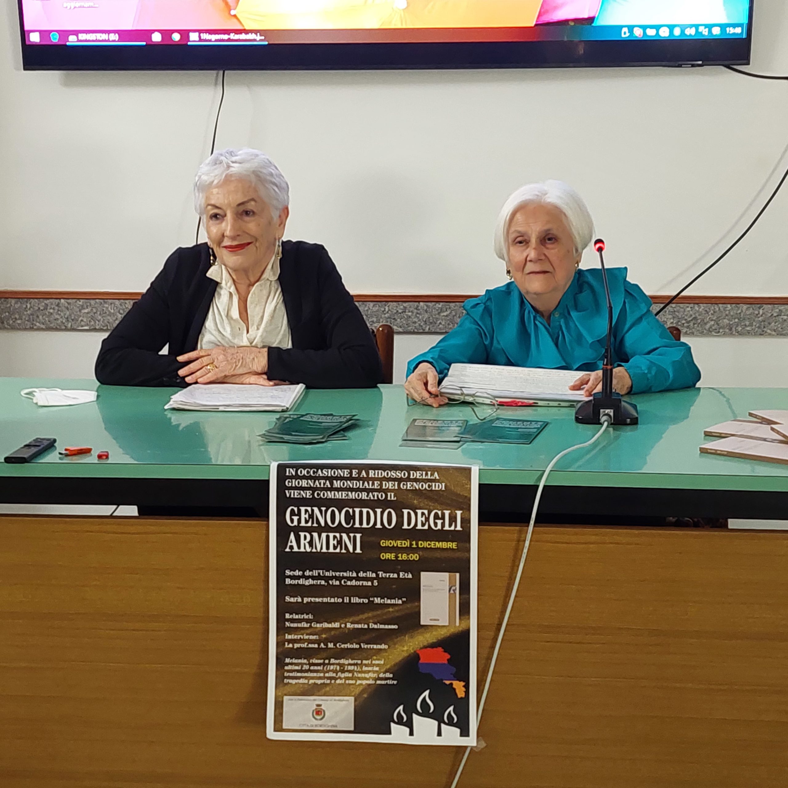 Oggi pomeriggio alle ore 16,00 presso la Sede dell’UNIVERSITA’ DELLA TERZA ETA’ – Via Cadorna n. 9 a Bordighera, è stato presentato il libro “Melania” (biografia di una sopravvissuta al Genocidio Armeno) in occasione della Giornata Mondiale dei Genocidi.