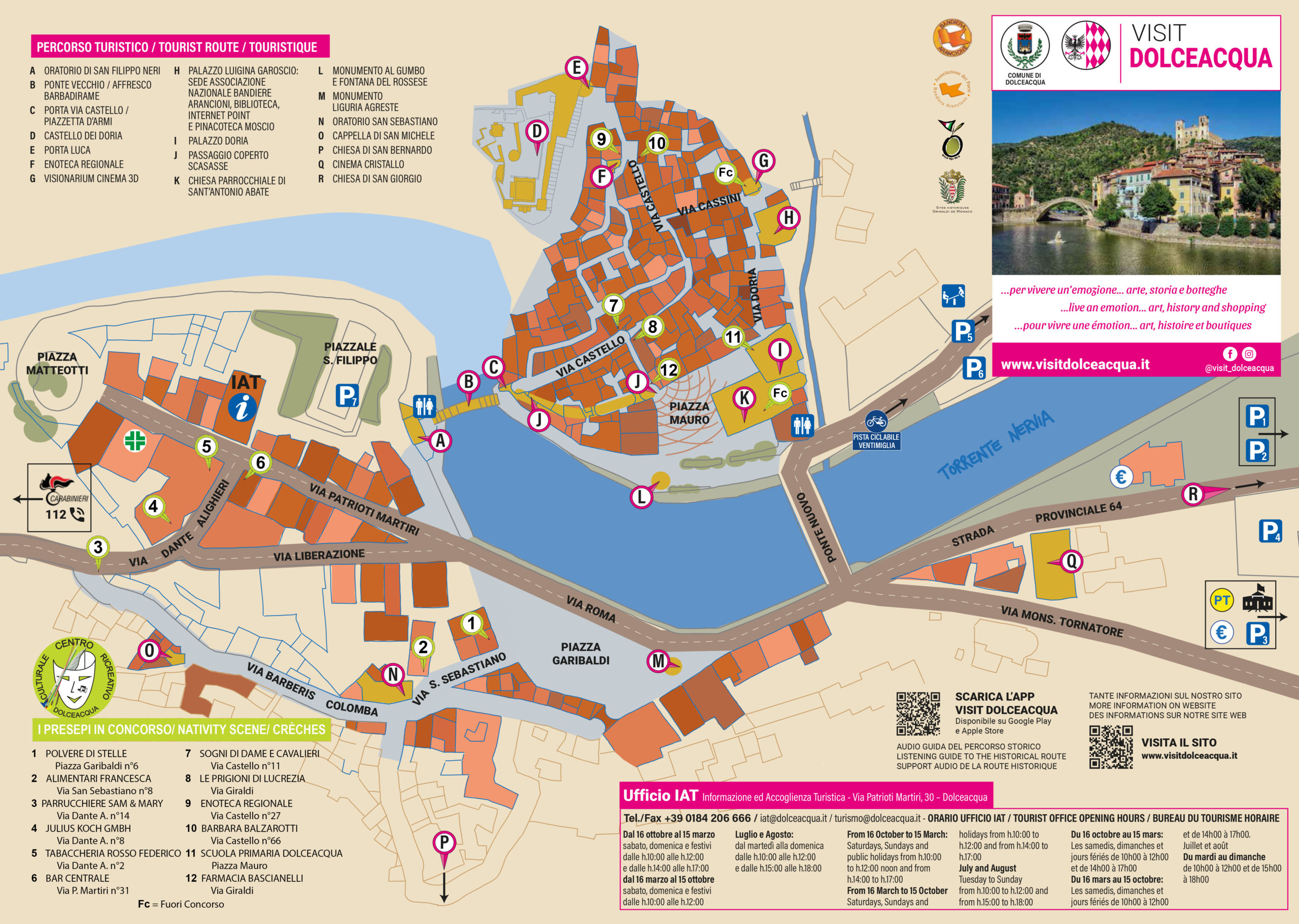 Quest’anno sono 12 le attività commerciali partecipanti. Ogni presepe in concorso è numerato ed è facile individuarli tra le vie. Una cartina è disponibile sul sito www.culturadolceacqua.it o sulle pagine fb ed Instagram. Troverete inoltre 2 presepi fuori concorso, essi non sono numerati ma indicati con FC.