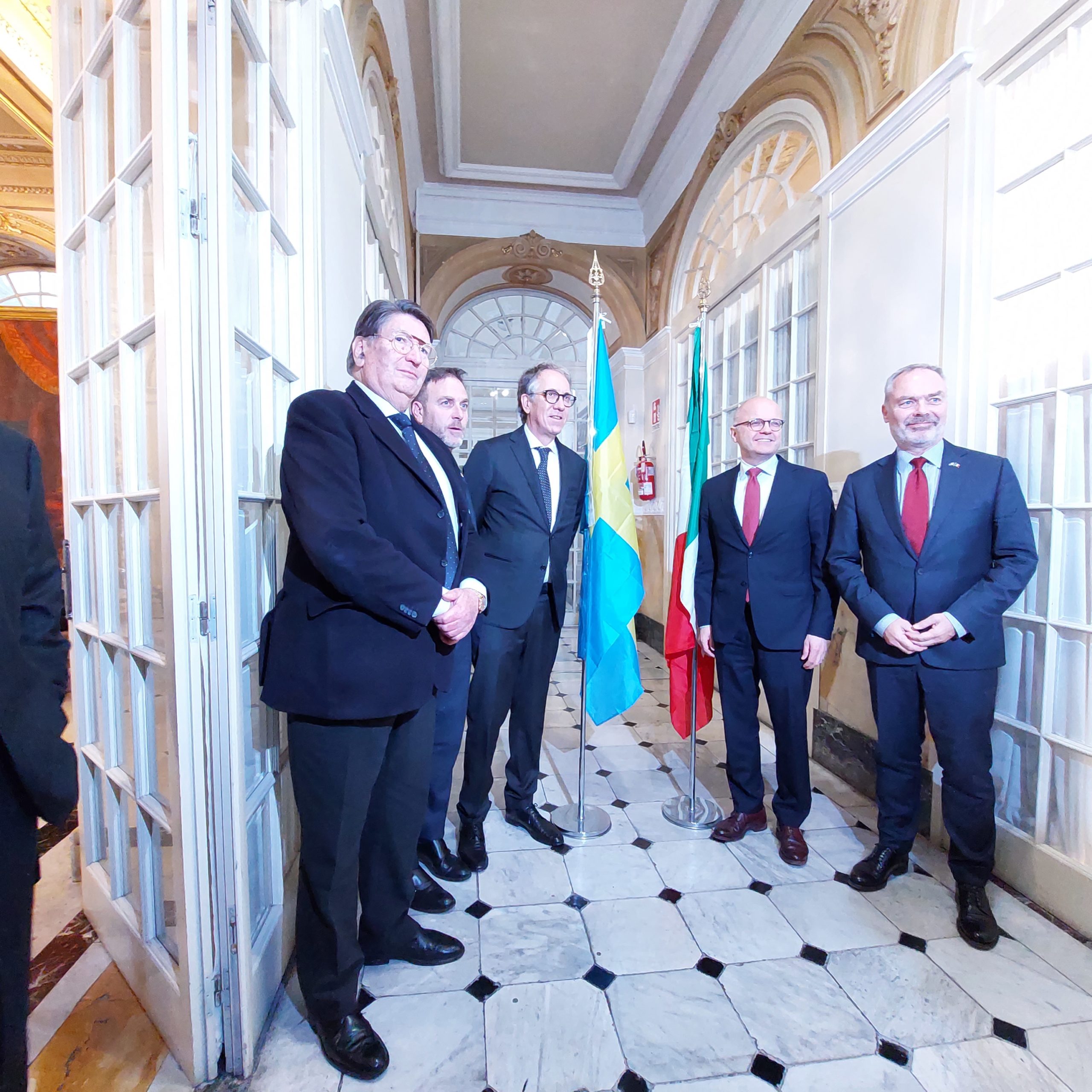 La visita dell’Ambasciatore avviene in occasione della presenza a Sanremo di una delegazione della Fondazione Nobel formata dall’executive director Vidar Helgesen, dal consigliere generale Per Josefsonm, dal project manager Fredrik Agmén e dall’events director Åsa Vestersköld.