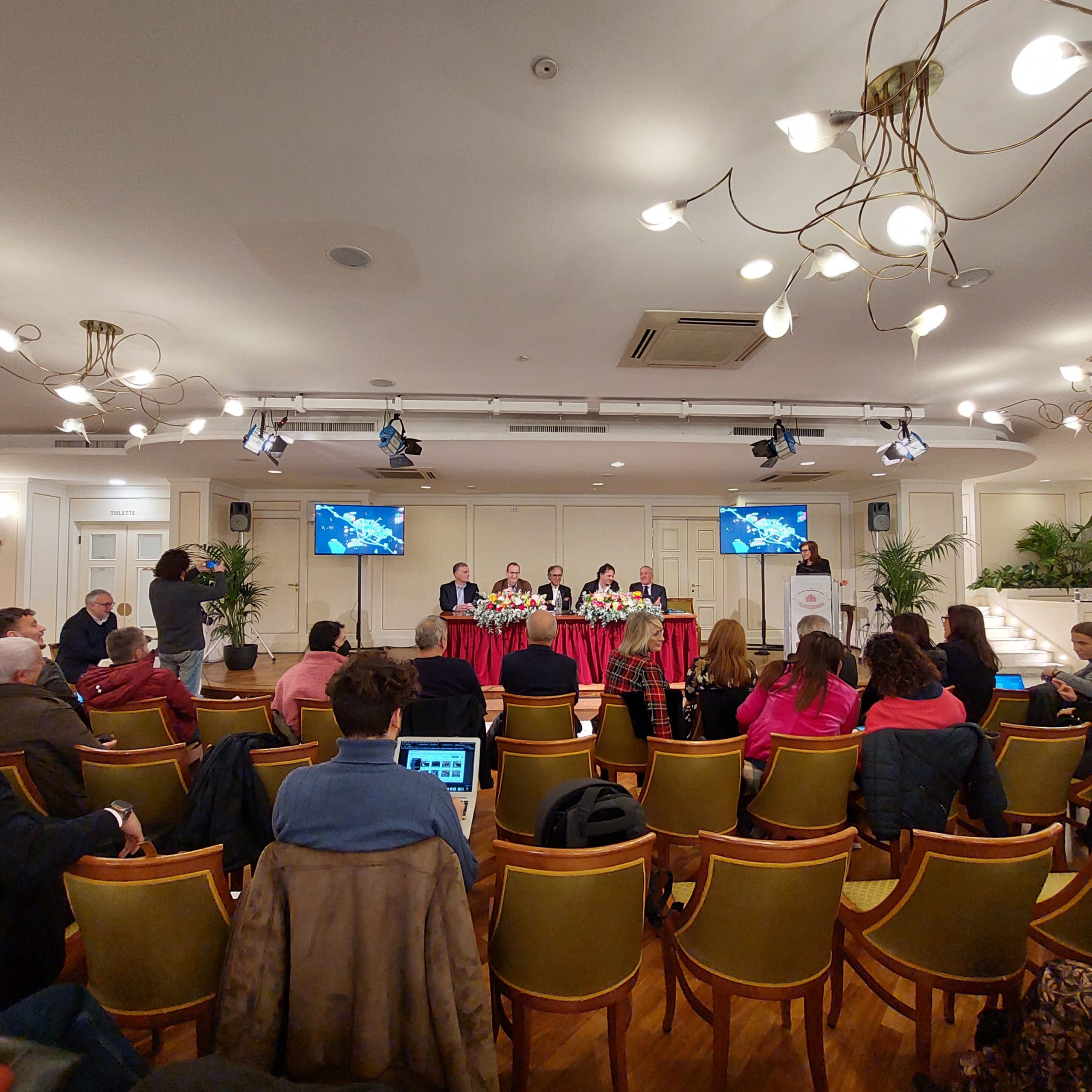 RAI PUBBLICITA’ IN CONFERENZA CON ADRIANO BATTISTOTTI PRESIDENTE CDA CASINO’ E GLI AMMINISTRATORI DI SANREMO ALBERTO BIANCHERI SINDACO E GLI ASSESSORI GIUSEPPE FARALDI E SILVANA ORMEA – MODERATRICE MARA PARDINI