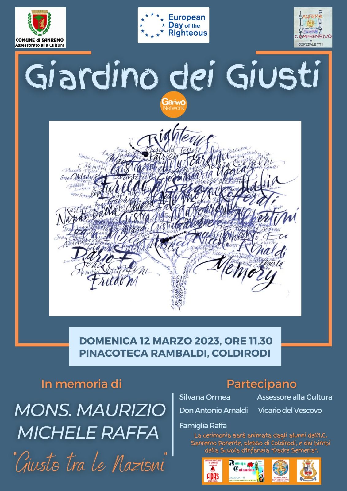 La cerimonia, realizzata con il sostegno del Comune di Sanremo – Assessorato alla cultura – si svolgerà in occasione della “Giornata europea dei Giusti”, istituita nel 2012 per ricordare l’esempio dei Giusti del passato e del presente e per diffondere i valori di responsabilità, tolleranza e solidarietà.