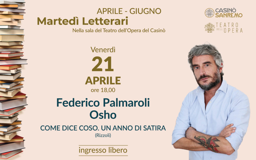 Venerdì 21 aprile ore 18.00 nel Teatro dell’Opera del Casinò Federico Palmaroli Osho presenta:”Come dice Coso. Un anno di satira” (Rizzoli). Ingresso libero e gratuito sino all’esaurimento dei posti disponibili.