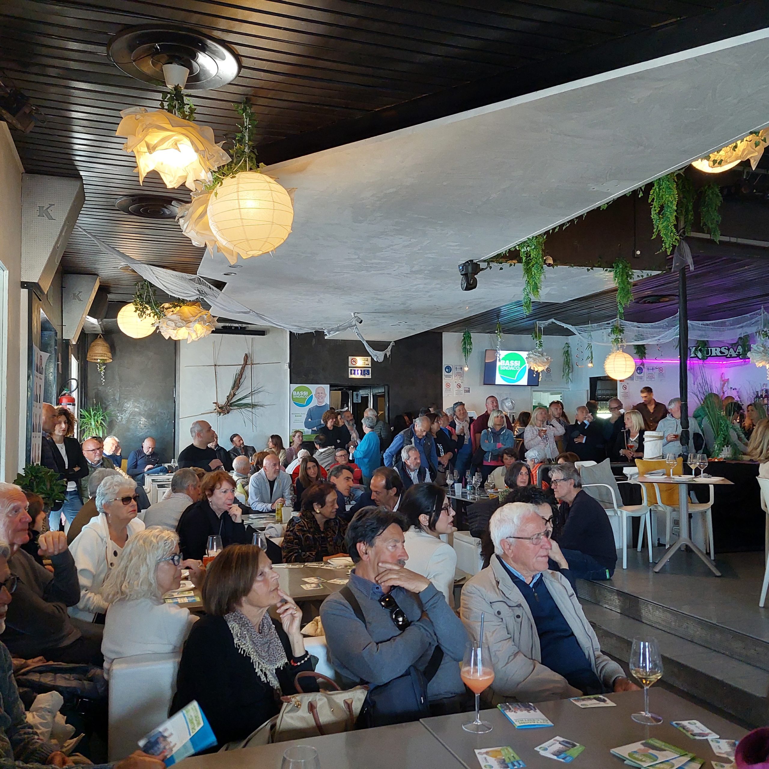 E’ stato un evento dal clima informale, con il pubblico seduto davanti ai rispettivi tavolini, gustando l’aperitivo offerto dai rappresentanti di lista.
