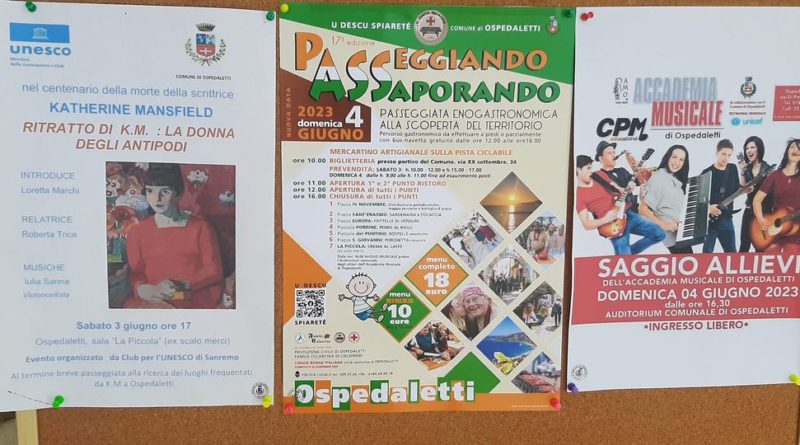 Dopo il successo del Piccolo Festival (Festival del libro per Ragazzi), tre eventi caratterizzano il primo fine settimana del mese di giugno ’23 a Ospedaletti.