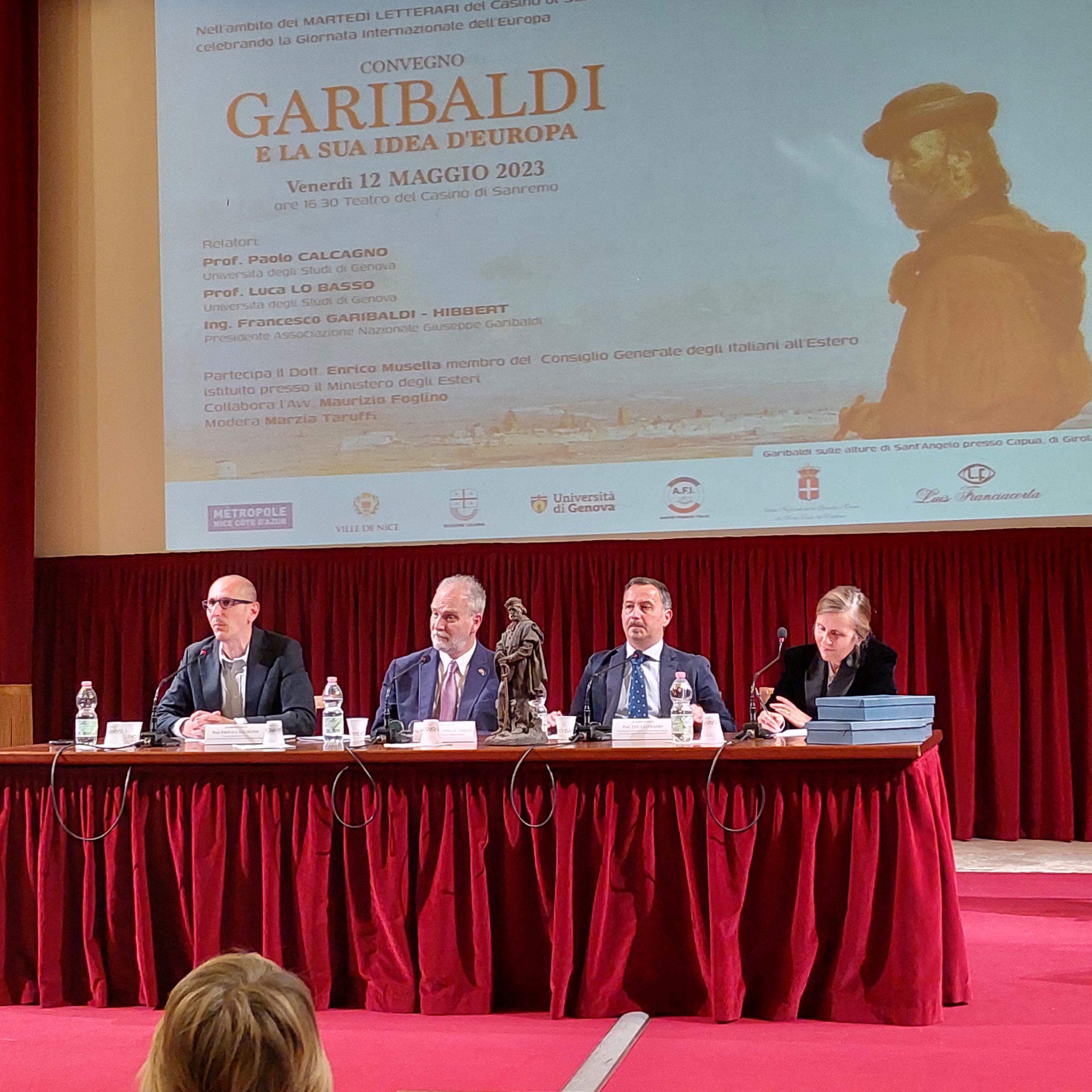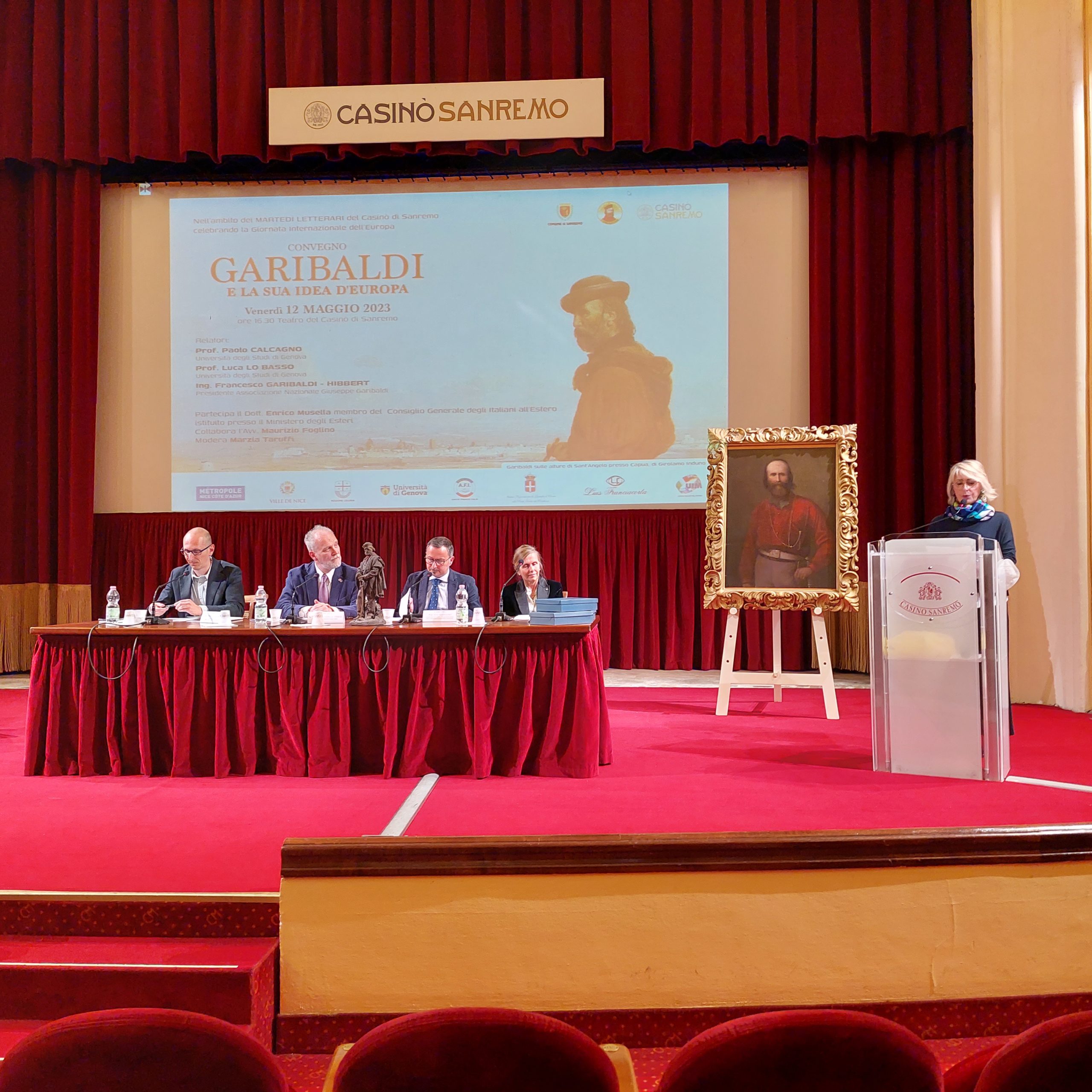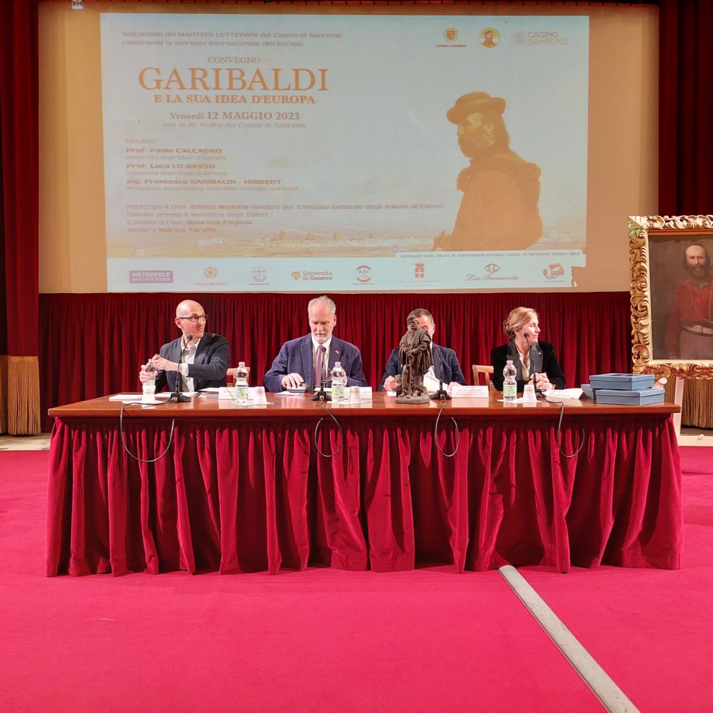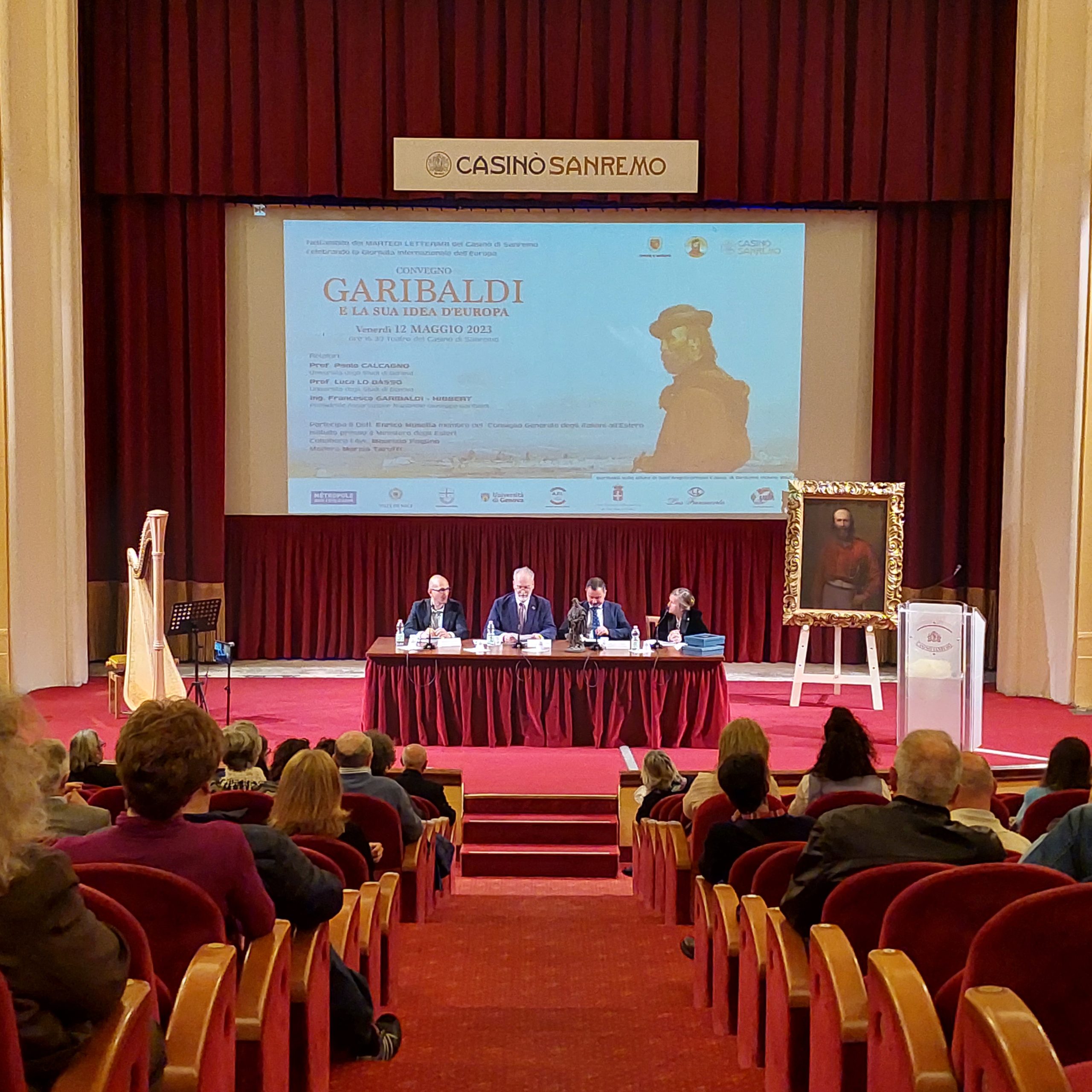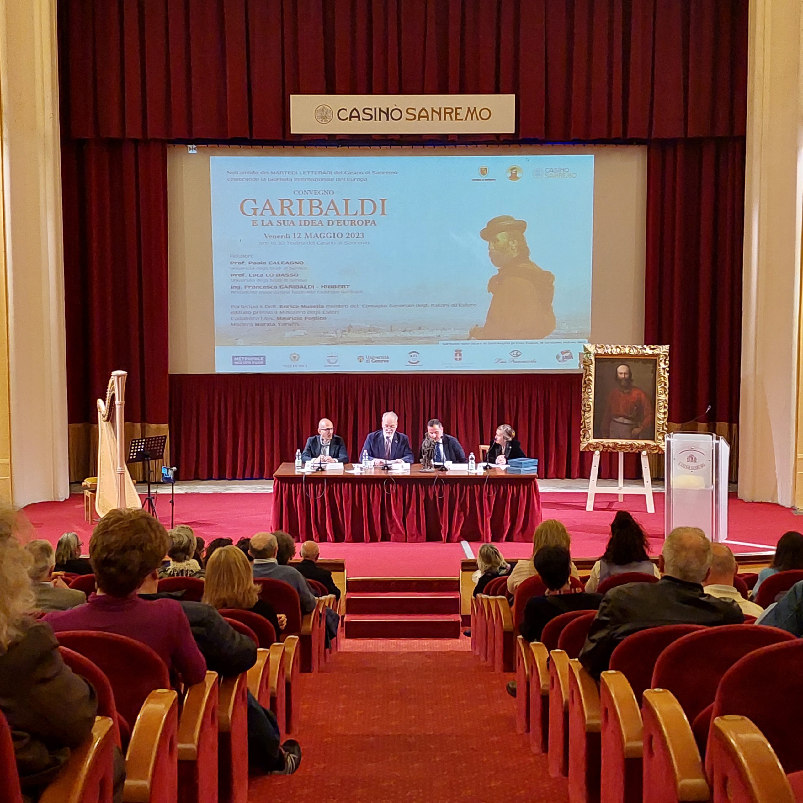 Nel pomeriggio di venerdì 12 maggio ore 16.30 nel Teatro dell’Opera del Casinò di Sanremo nell’ambito dei Martedì Letterari , festeggiando la Festa internazionale dell’Europa, in collaborazione con l’Associazione Nazionale Giuseppe Garibaldi , ha avuto luogo il Convegno:” Garibaldi e la sua idea d’Europa”.