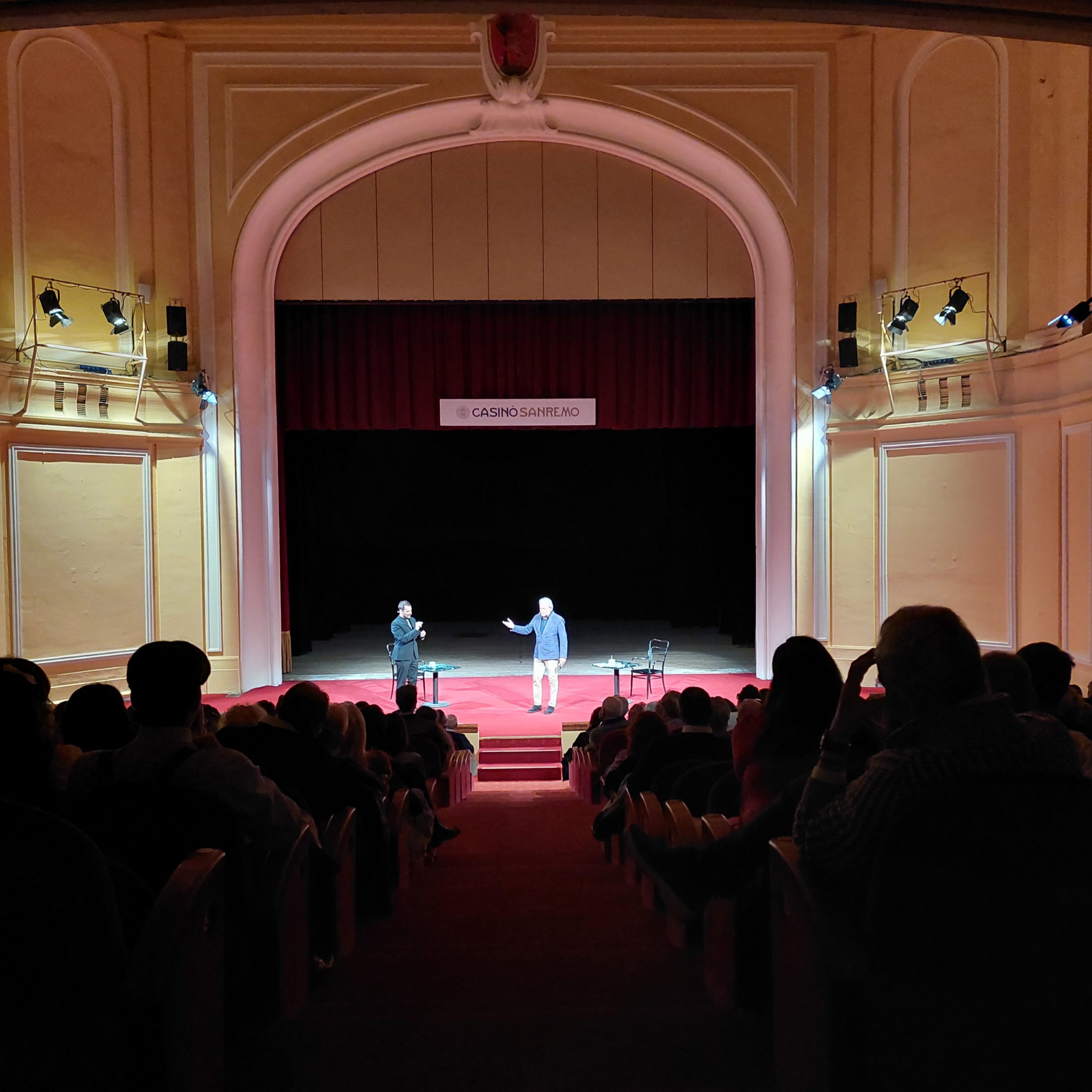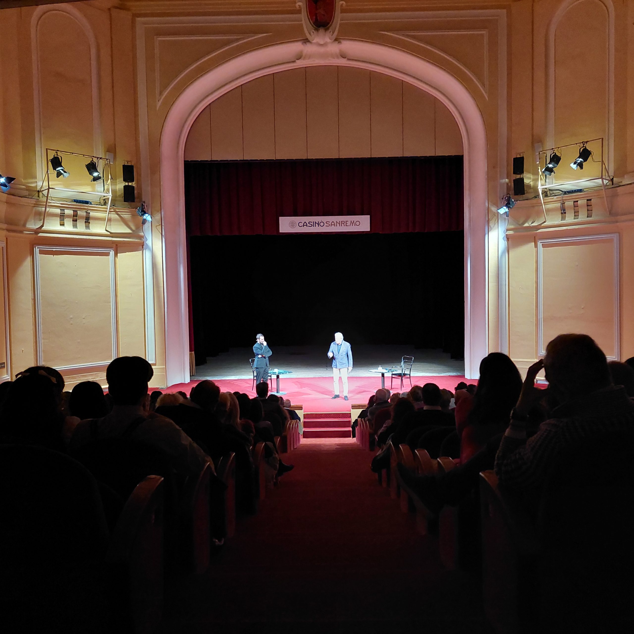 Ieri è stata una bella serata all’insegna della cultura con Corrado Tedeschi e Claudio Moneta al Teatro dell’Opera del Casinò di Sanremo.