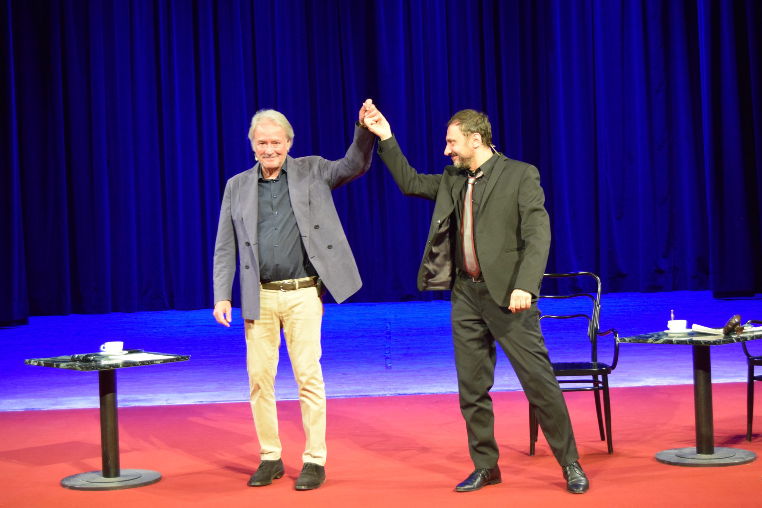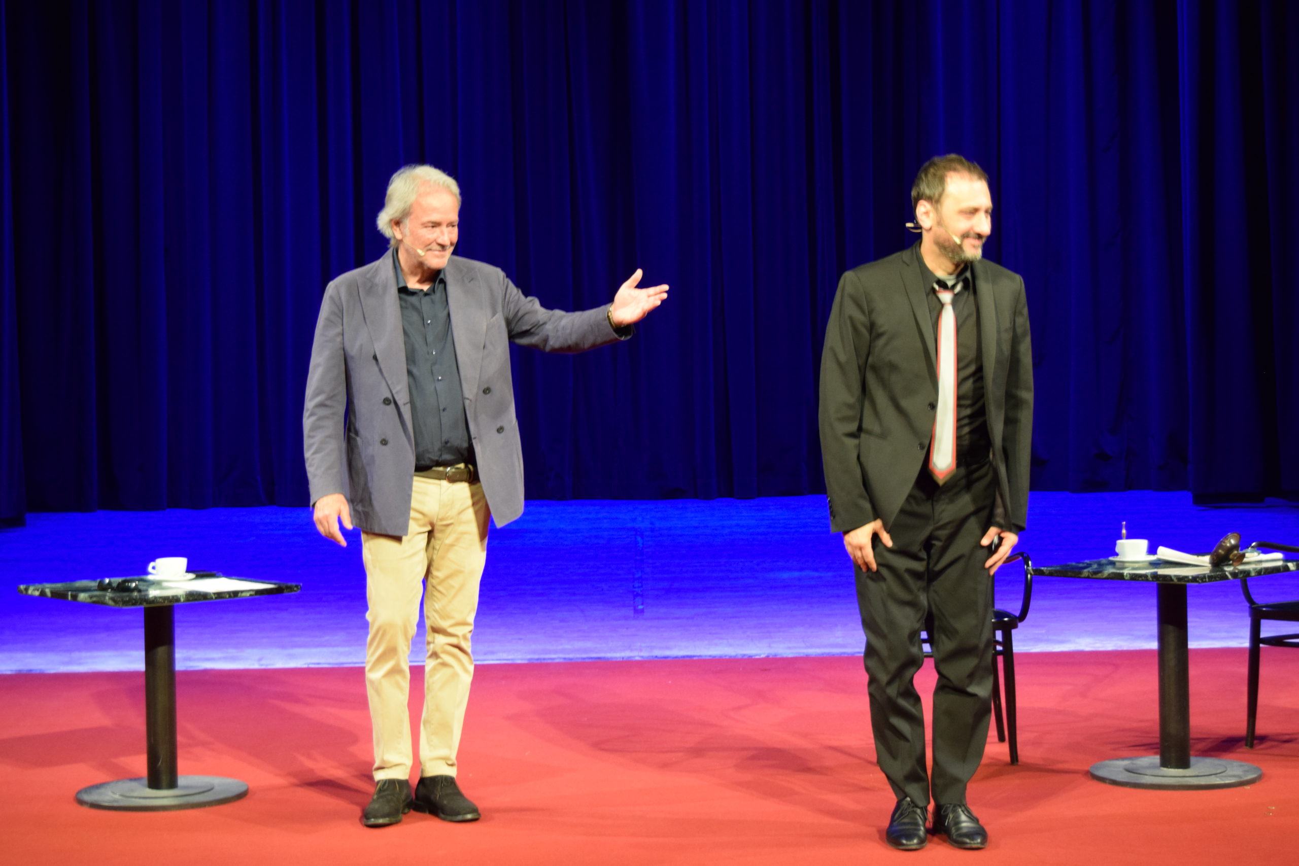 Eccellenti interpreti Corrado Tedeschi e Claudio Moneta hanno presentato “Lezioni semiserie pirandelliane” e “L’uomo dal fiore in bocca”, proponendo uno spettacolo attuale e coinvolgente di un classico pirandelliano. L’allestimento elegante in cui Corrado Tedeschi ha potuto esprimere il suo talento teatrale, emozionando il pubblico sino ad ottenere un brillante successo.