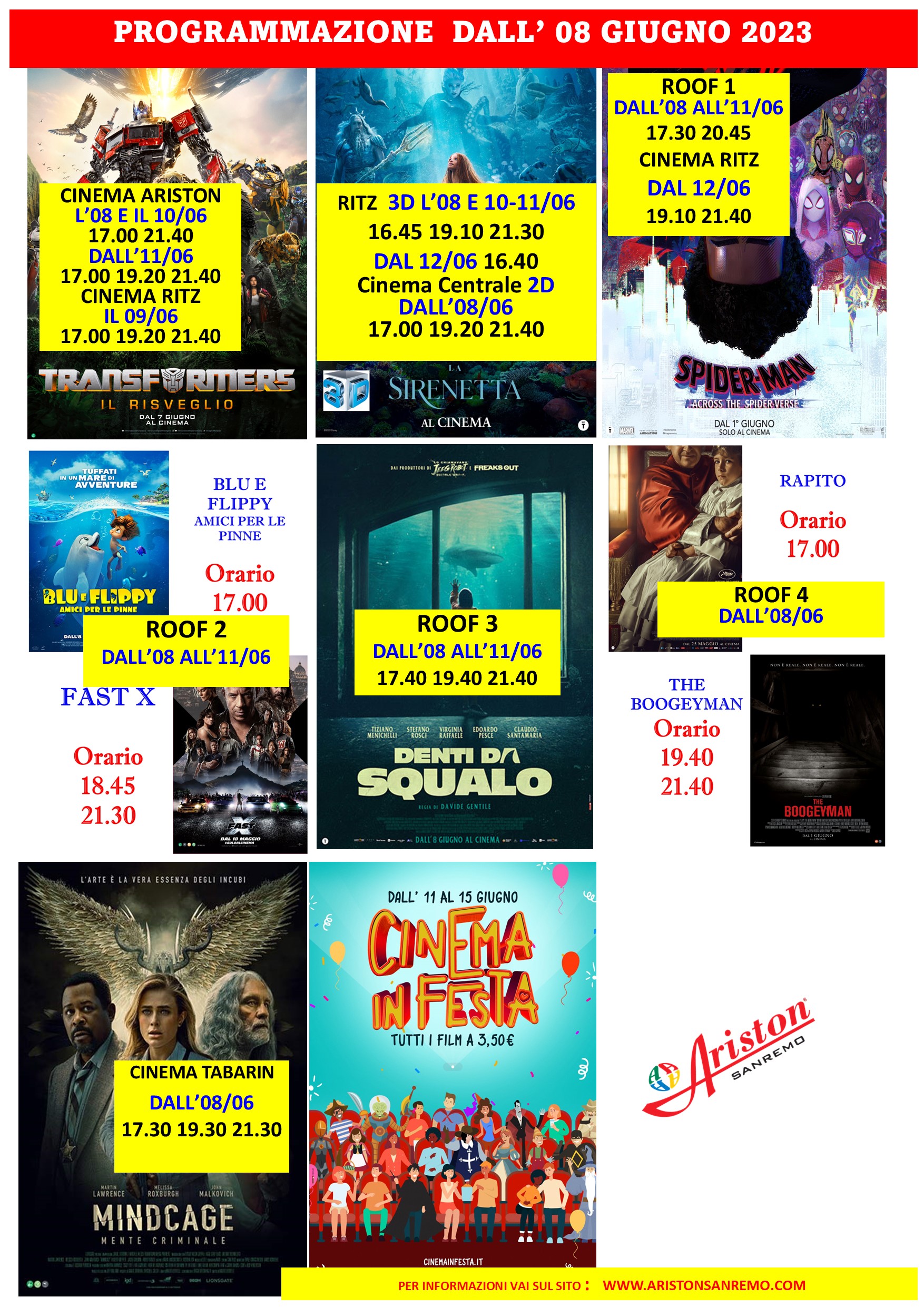 PROGRAMMAZIONE CINEMA SANREMO DAL GIORNO 8 GIUGNO 2023