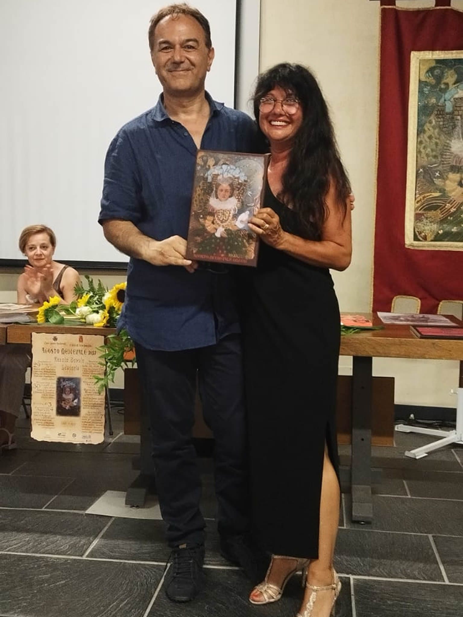 Nella calda serata, condotta da Piero Fusco, Presidente dell’Ente, allietata da alcuni intermezzi musicali del Coro polifonico Città di Ventimiglia, presieduto dal Prof. Alberto Massara e magistralmente diretto da Cecilia Pini, si sono succeduti numerosi interventi: ampia introduzione all’ospite d’onore il “Palio Marinaro” opera pittorica di Cony Shesson che secondo tradizione raffigura alcuni dei particolari estratti dal tema scelto per la rievocazione dell’Agosto Medievale; dettagliata descrizione della realizzazione artigianale dell’abito del Corsaro effettuata da Antonella Didonè; lettura brani estrapolati dalla tesi di laurea “Tra realtà e fantasia, un viaggio alla scoperta dell’opera innovativa di Emilio Salgàri”, da 110 e lode, della ventimigliese Sara Piagentini, letti da Silvana Minuto e la poesia in dialetto Ventemigliusu “Via Cavour, verso il ponte” composta e interpretata da Gaspare Caramello con strofe alternate dal ritornello cantato dal Coro che ha concluso la sua esibizione cantando “Fatene carà Paulin” considerato ormai l’inno di Ventimiglia!